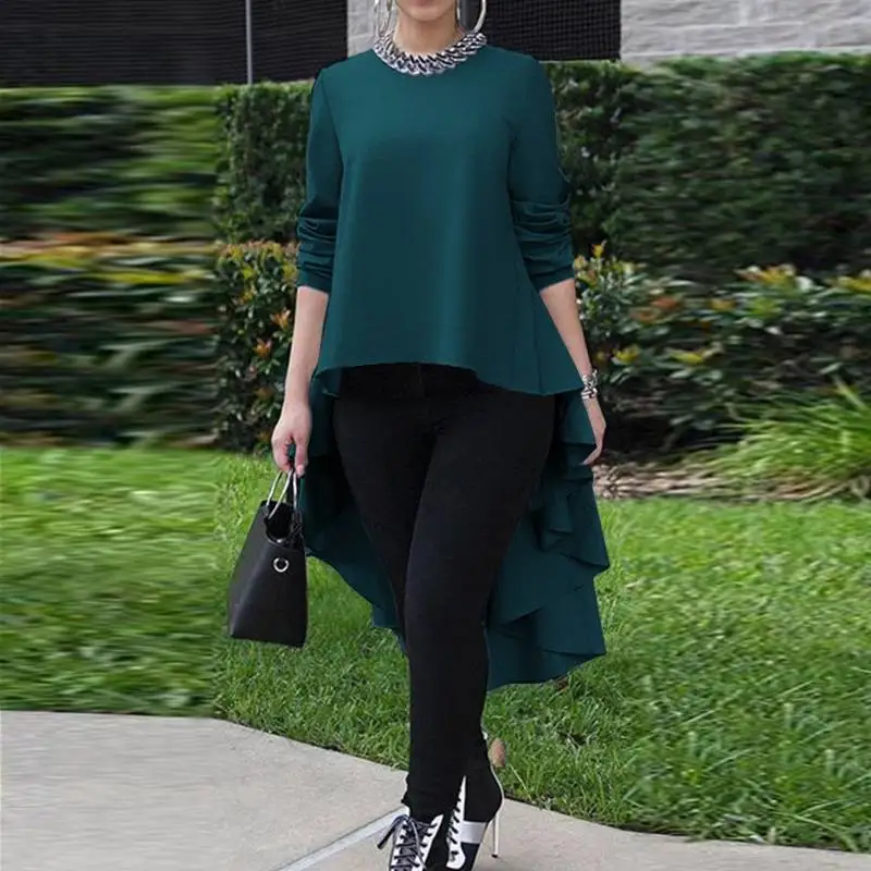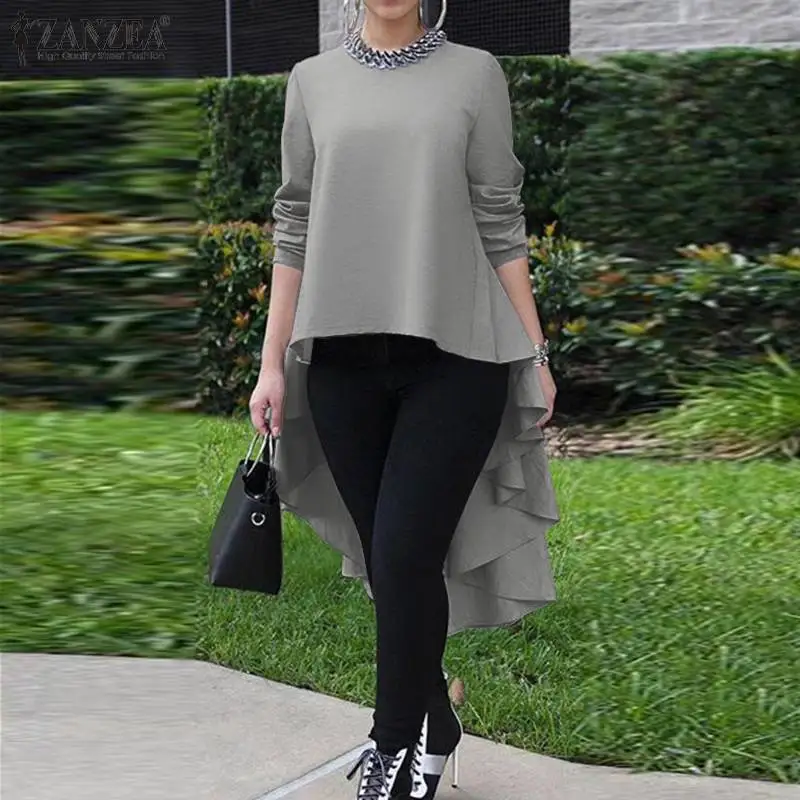 Осенняя Женская Асимметричная блузка ZANZEA 2022, Длинные рубашки с...