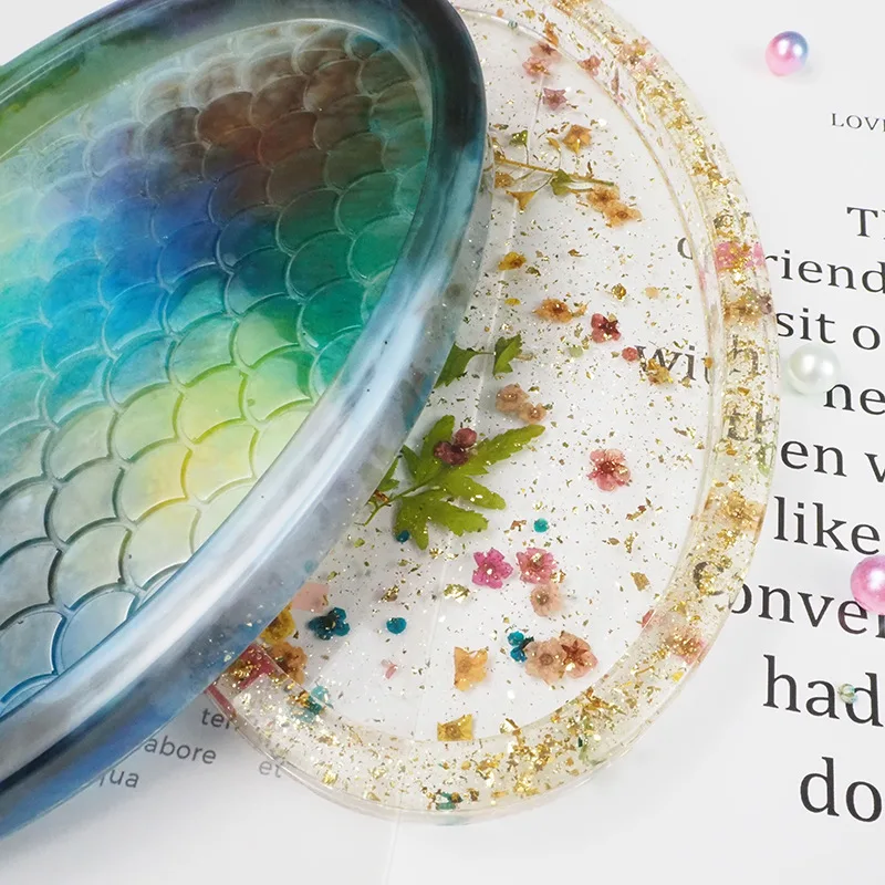 DIY кристальная эпоксидная смола овальный поднос Coaster Силиконова...