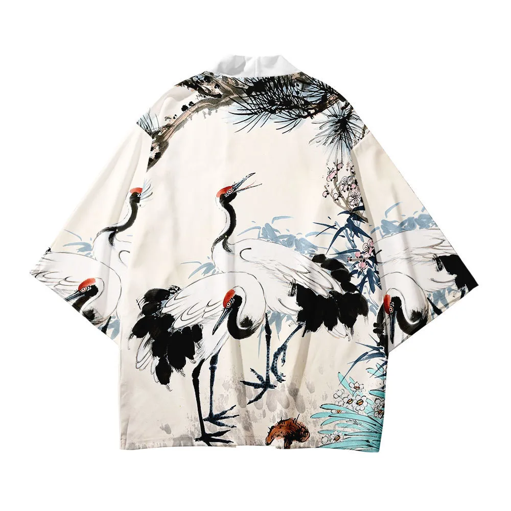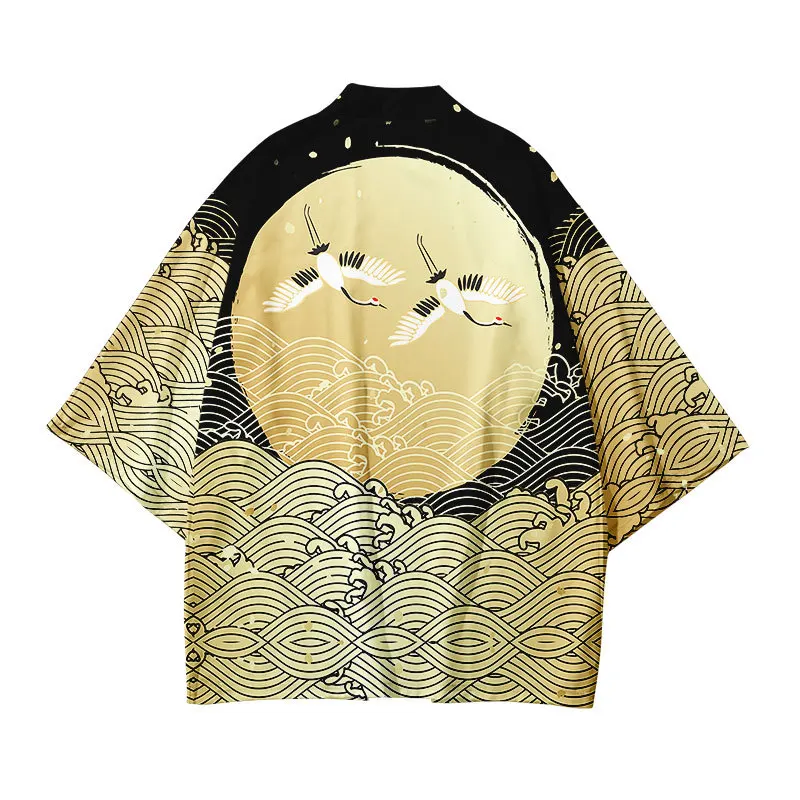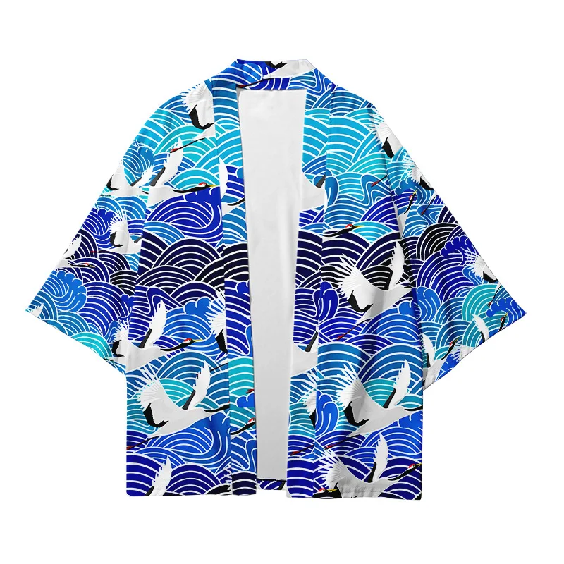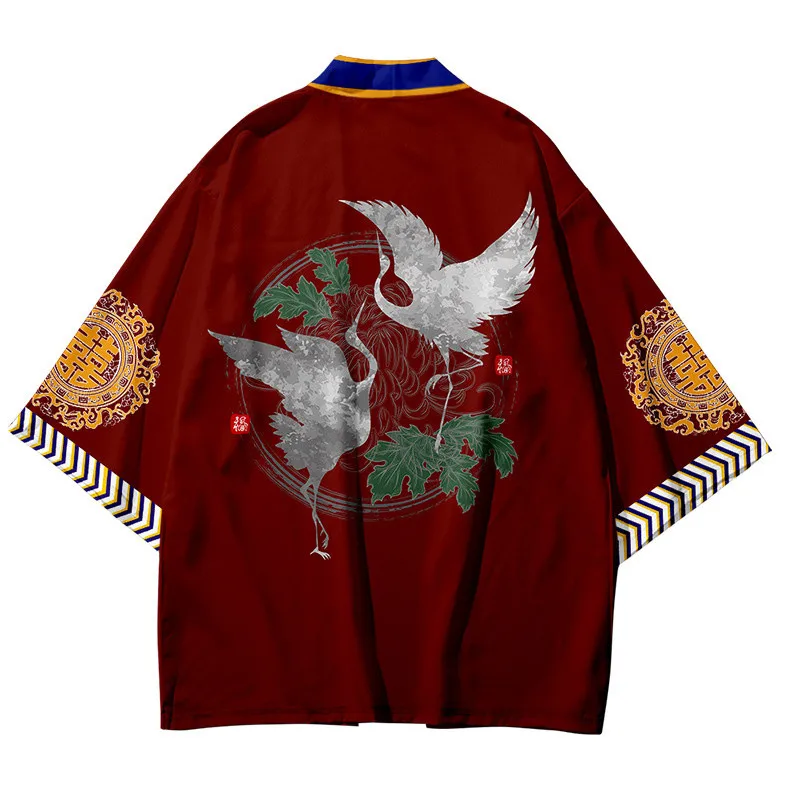 Кимоно для мальчиков и девочек 3-14 лет, Детский кардиган с самураем, Журавлями и карпом, свободная рубашка, повседневные, юката