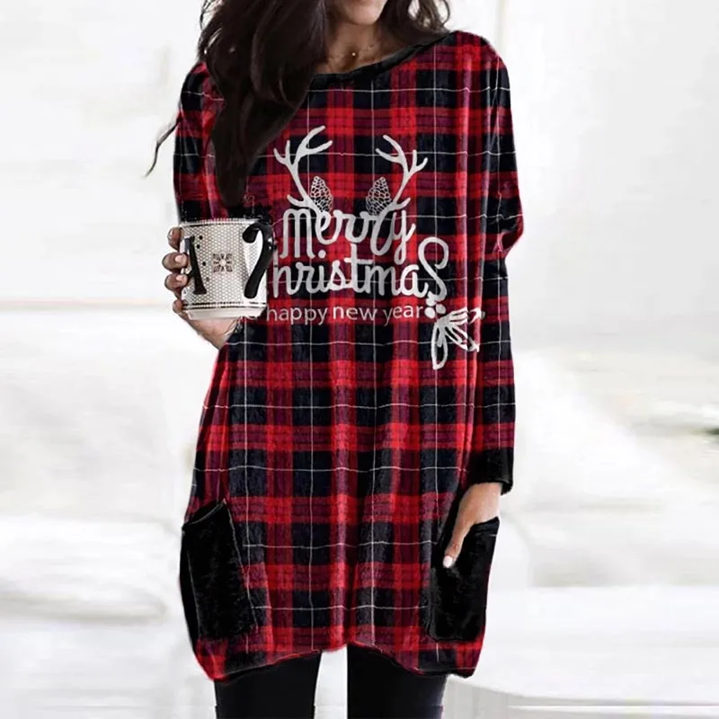 Рождественское мини-платье, Женский Рождественский свитшот, Теплые Топы, длинные рукава, о-образный вырез, джемпер, топ, зима-осень, пуловеры размера плюс
