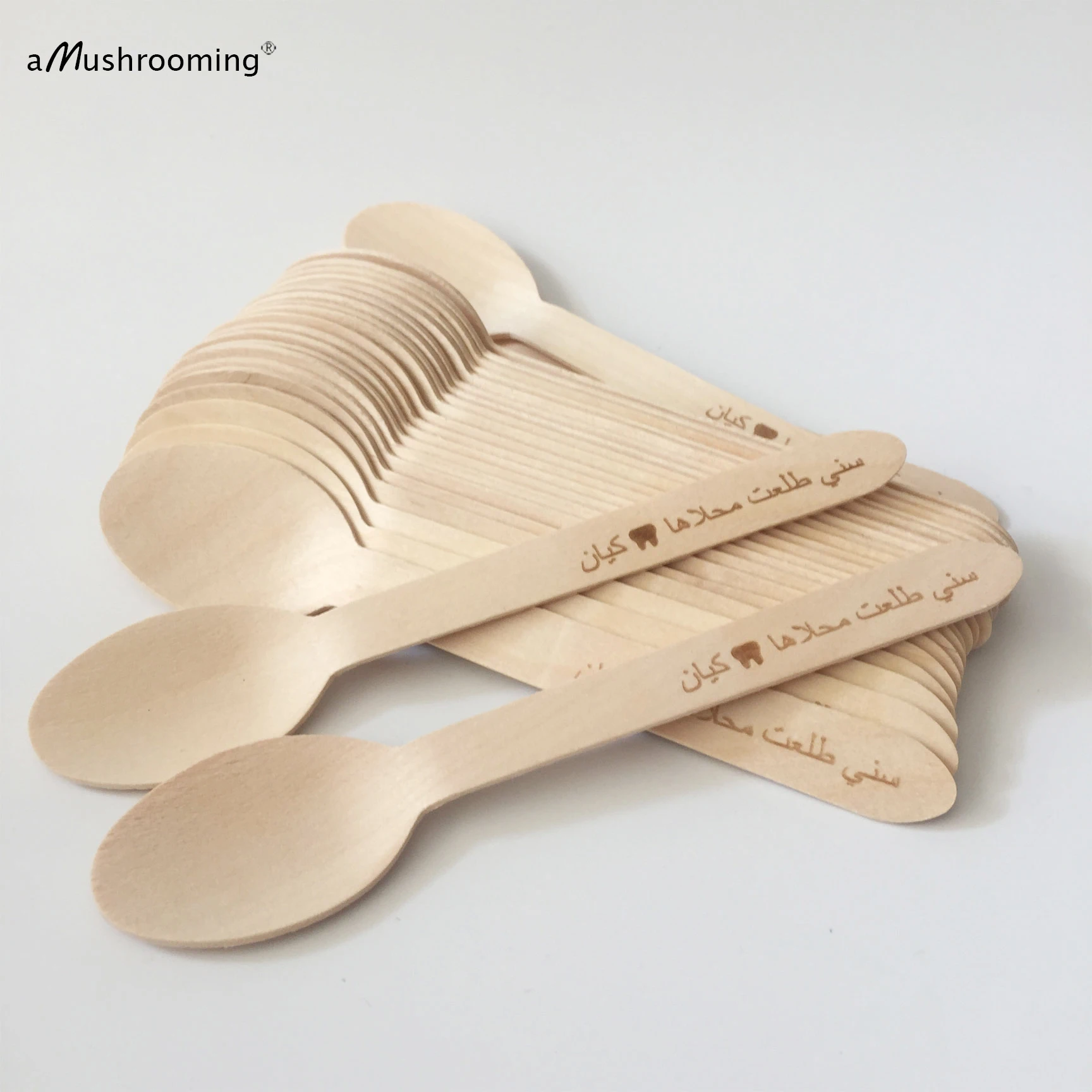 25 шт., ложки для первого зуба на день рождения, десертные ложки для мороженого с текстом, для маленьких мальчиков и девочек, для душа, персонализированные деревянные ложки