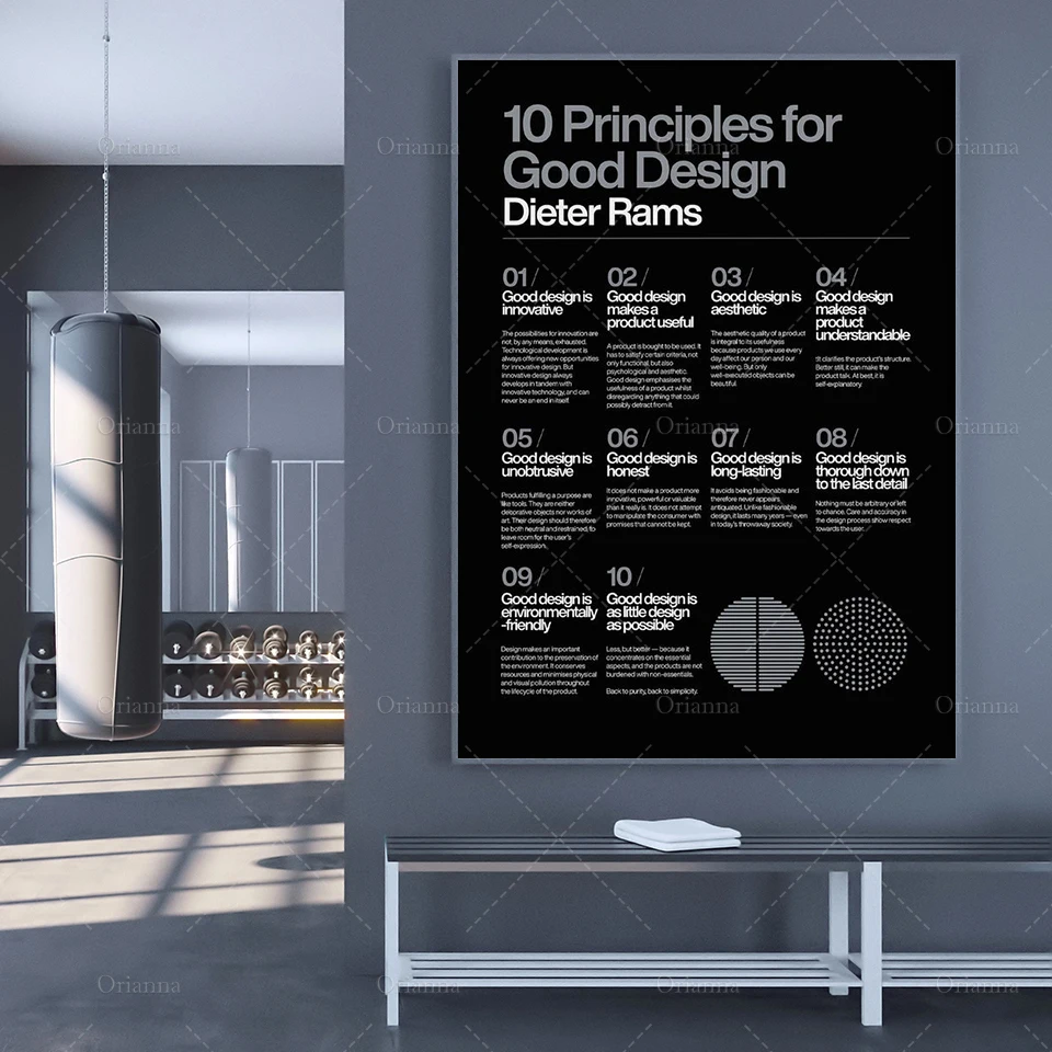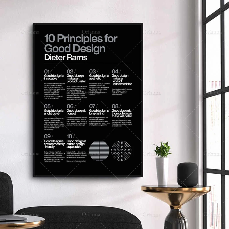 Плакат 10 принципов для хорошего дизайна, диэтер рами, Braun, типографика, цитата, современное искусство, Настенная картина на холсте, принты