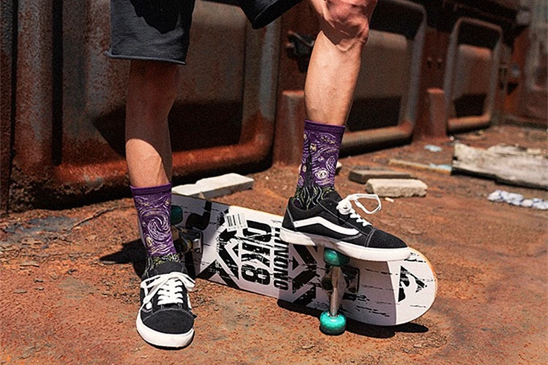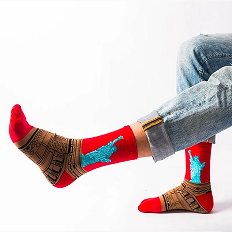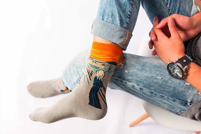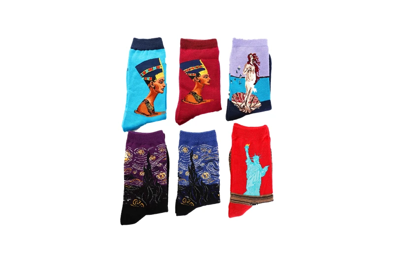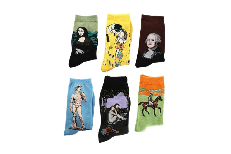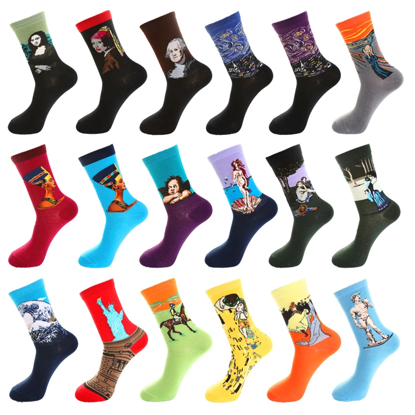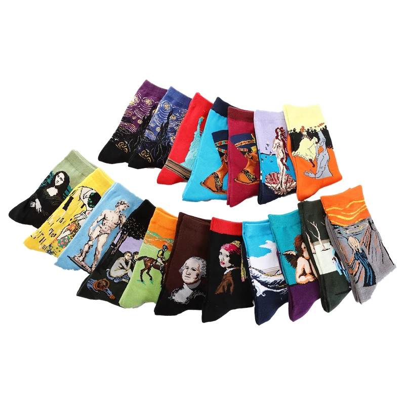 Носки женские в стиле ретро, классические Смешные осенне-зимние, с принтом Ван Гога, Моны Лизы