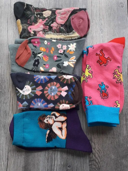Носки такие же, как в описании и той же модели. Еще красивее лично. Очень доволен ими и они качественные. Я куплю больше количества и с другими рисунками. Я рекомендую 100%, но это заняло больше времени, чем я ожидал, но оно того стоило, потому что они милые.