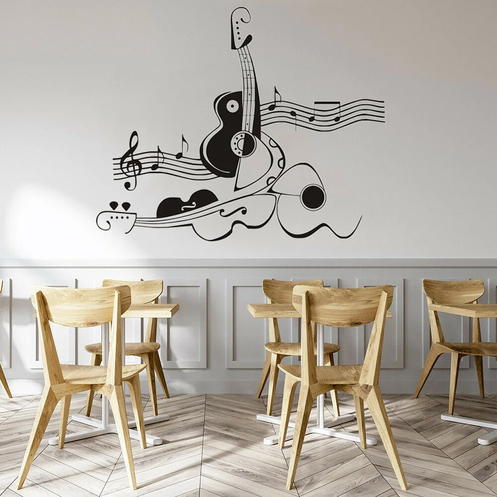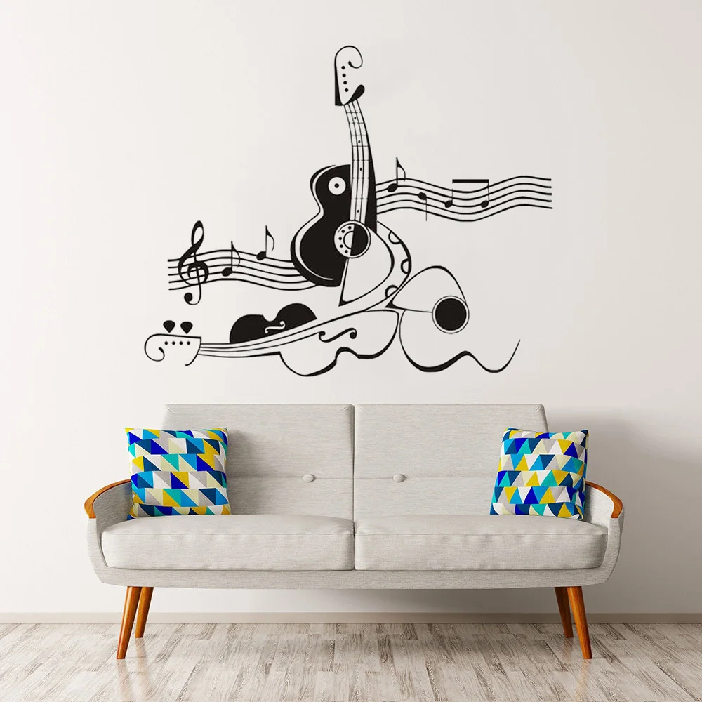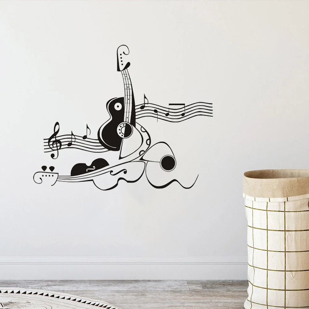 Креативная абстрактная гитара и скрипка, виниловая настенная наклейка, роспись, музыкальные ноты, искусство, обои для съемной росписи icon star icon star icon star icon star icon star