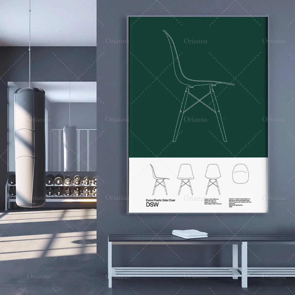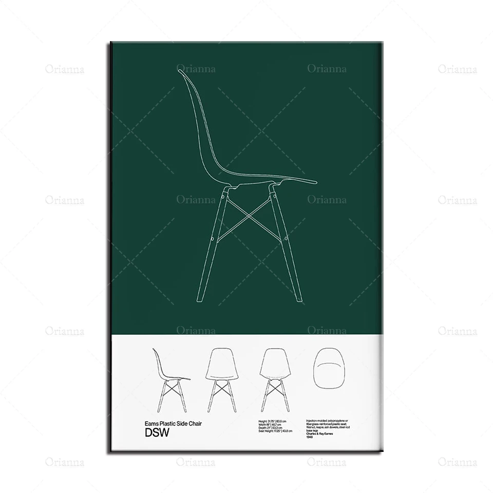 Постер Eames DSW Chair Mid Century, Художественная печать, минимальный дизайн, Чарльз ан Рей Эймс, настенная живопись, Картина на холсте