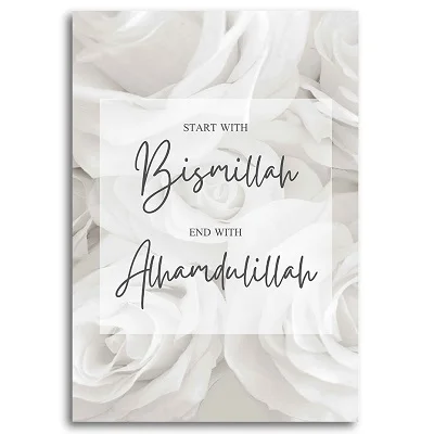 Белая Цветочная мусульманская Настенная роспись на холсте Bismillah...