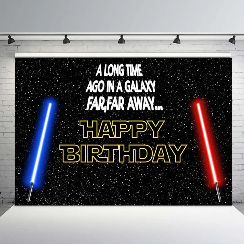 Фон для фотосъемки с изображением галактики на день рождения, звезды, черное небо, Вселенная, Детские праздничные принадлежности для мальчиков, синие и красные световые мечи, Декор