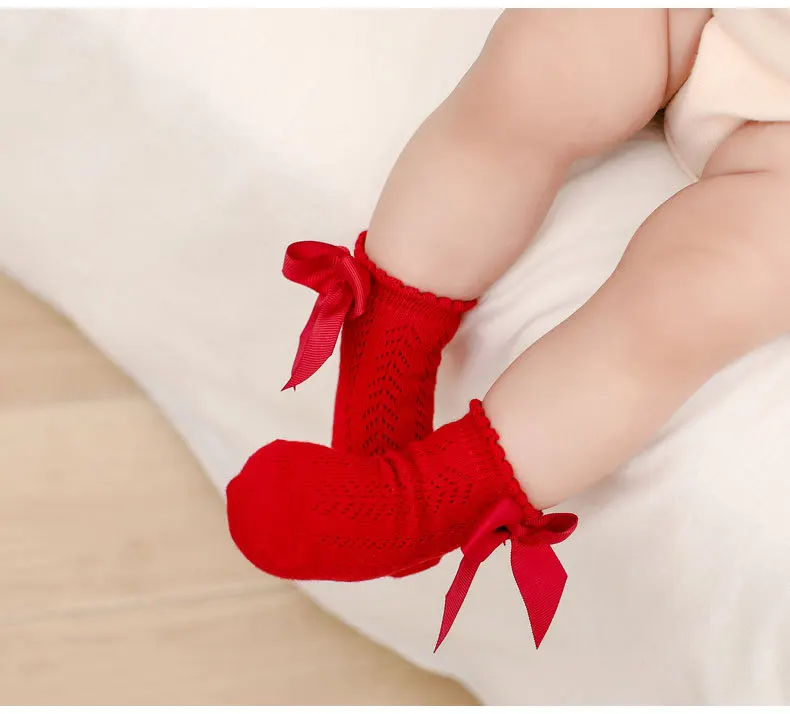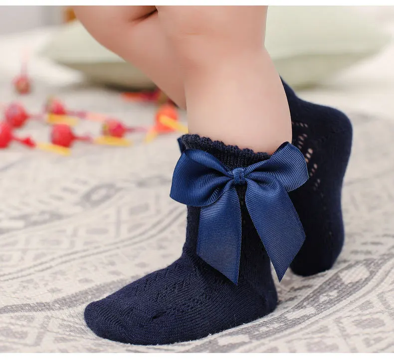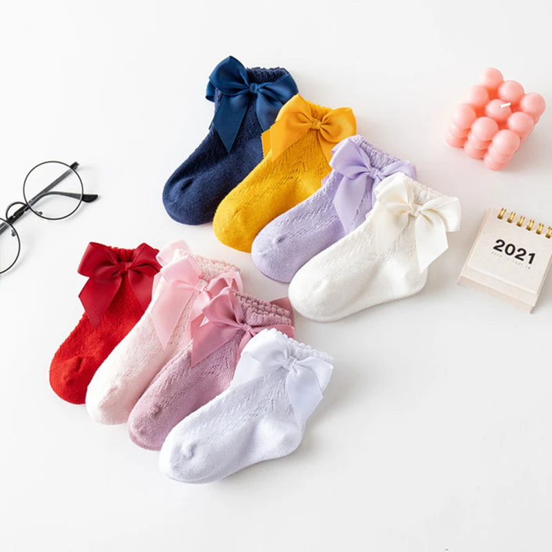 Носки для новорожденных девочек, хлопковые, с бантом, сетчатые, на ...