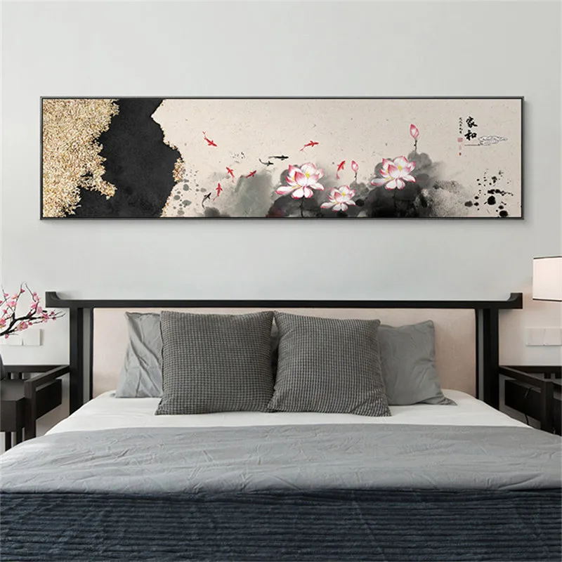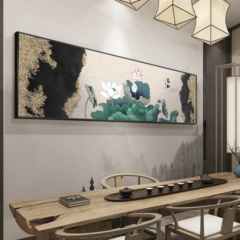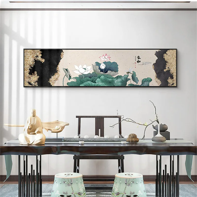 Традиционный китайский стиль дзэн Лотос растение кран Холст Картина, печатный плакат Декор Настенная картина для гостиной дома офиса