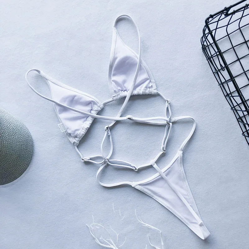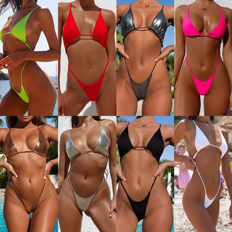8 однотонных микро стрингов бикини сексуальный недоуздок, женский купальник, Бразильское бикини, купальный Монокини пуш-ап на бретельках, комплекты бикини
