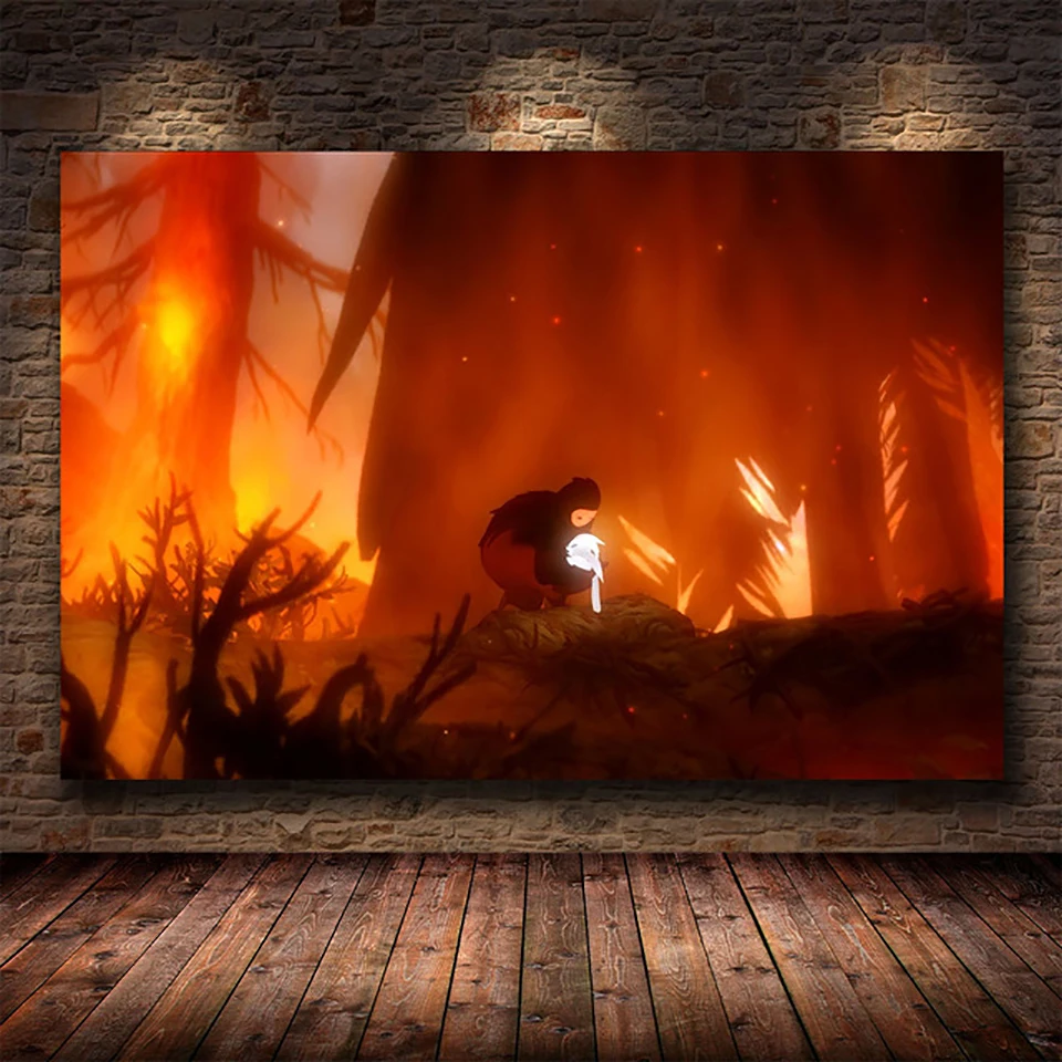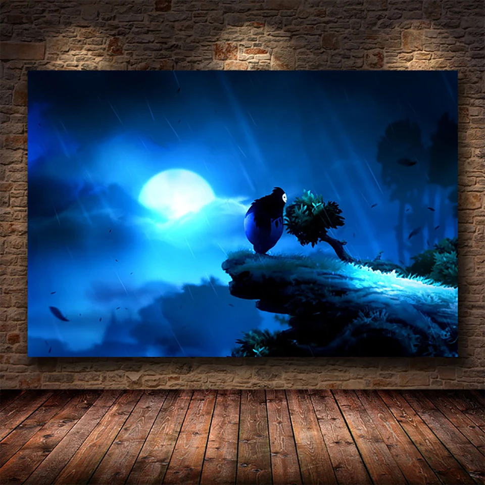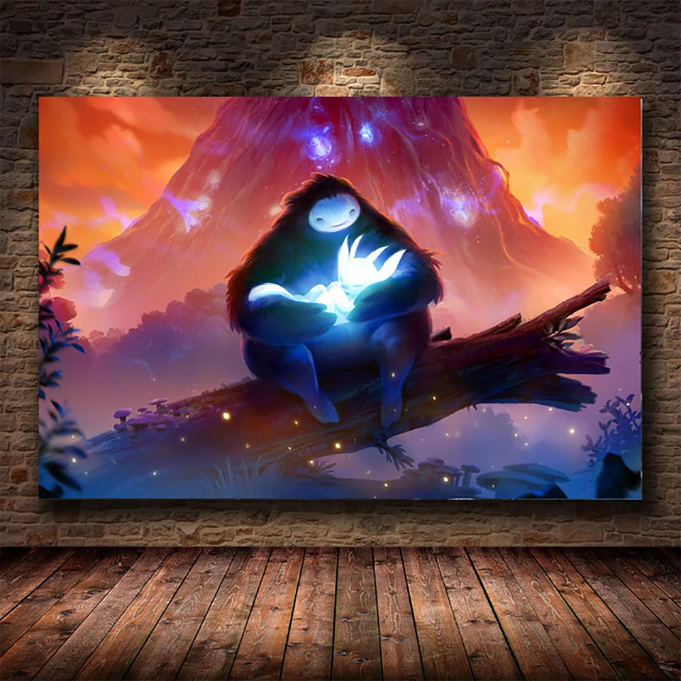 Декоративная картина ори и слепой лес на HD холсте игровой постер К...