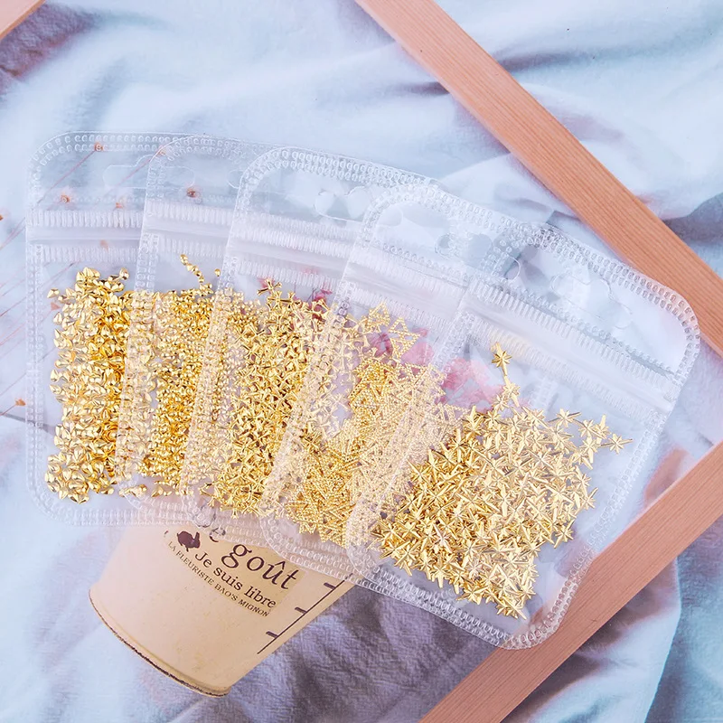 Цвет: золотой, серебряныйКоличество: 200/500 штВес: около 25 г/пакетИспользование: ногтей DIY, украшения телефонов и т. Д.