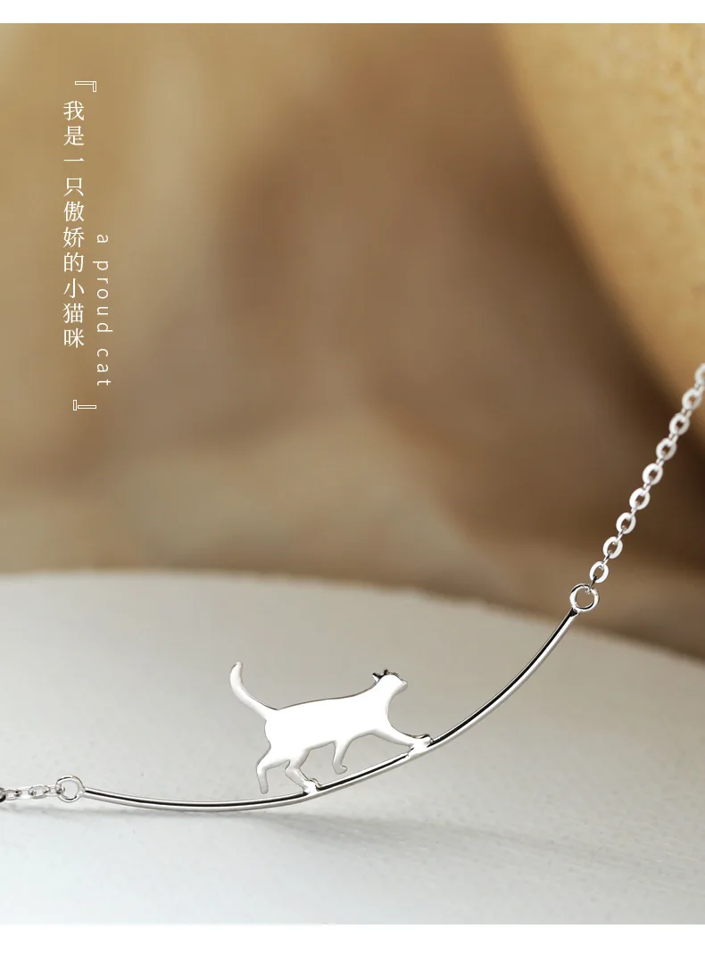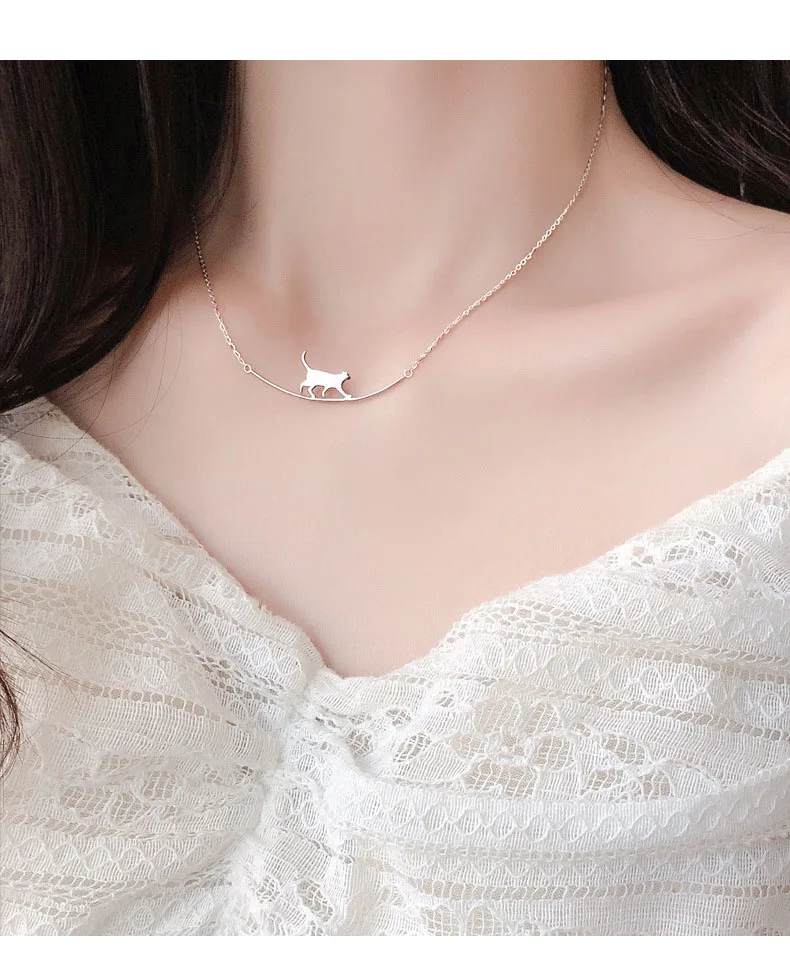Женская мода S925 Серебряный котенок Прогулка личность кулон ожерелья N090