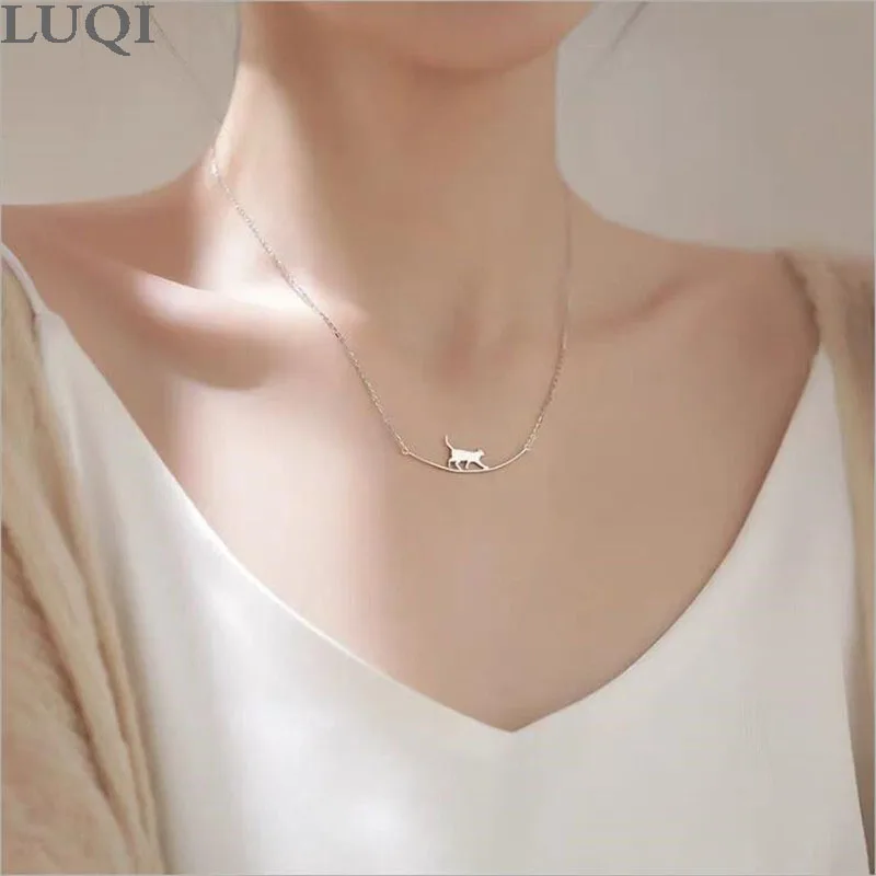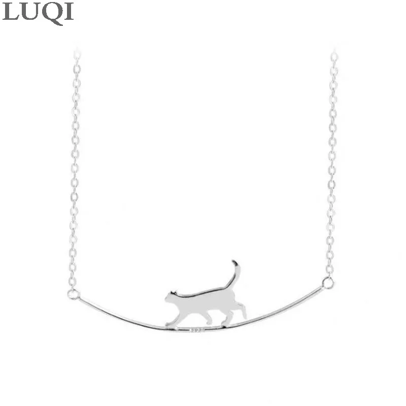Женское ожерелье из серебра 925 пробы с подвеской в виде кошки