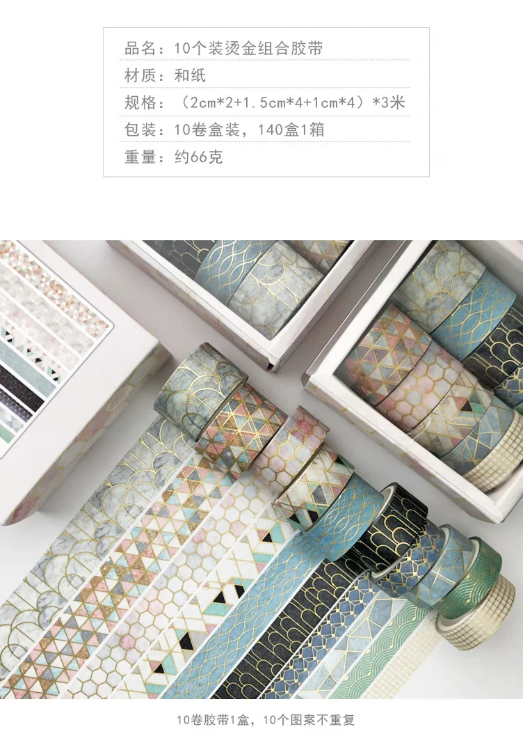 10 шт., геометрическая форма набор декоративного скотча Васи золото...
