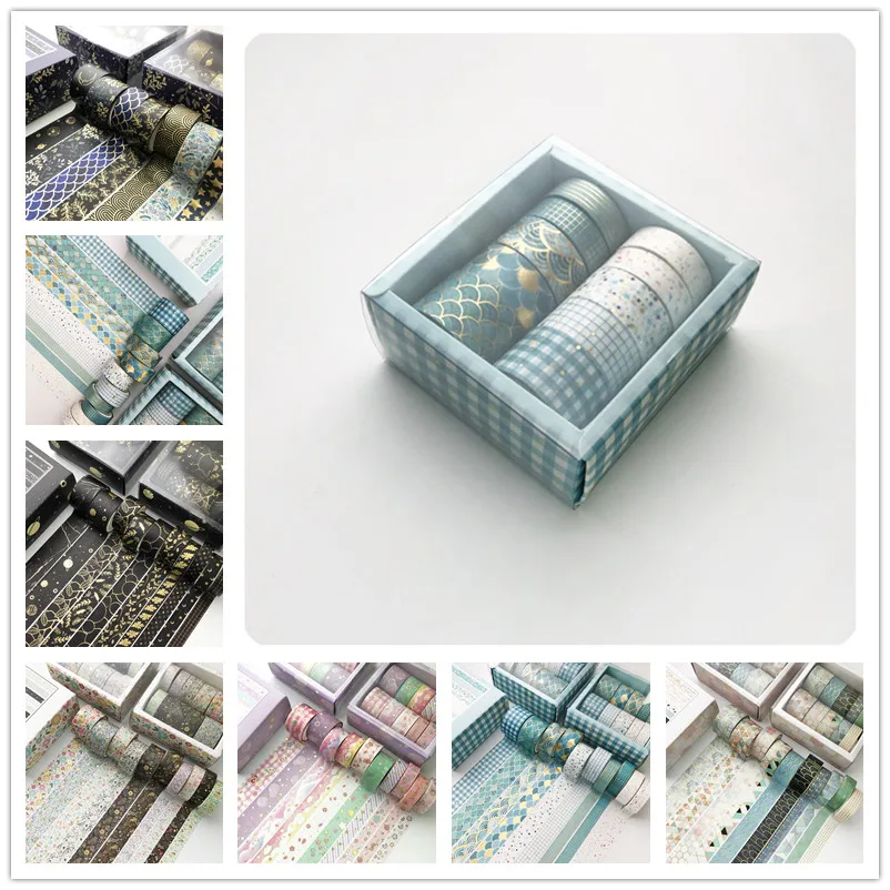 10 рулон Золотая блестящая бумага васи декоративные ленты клей маля...