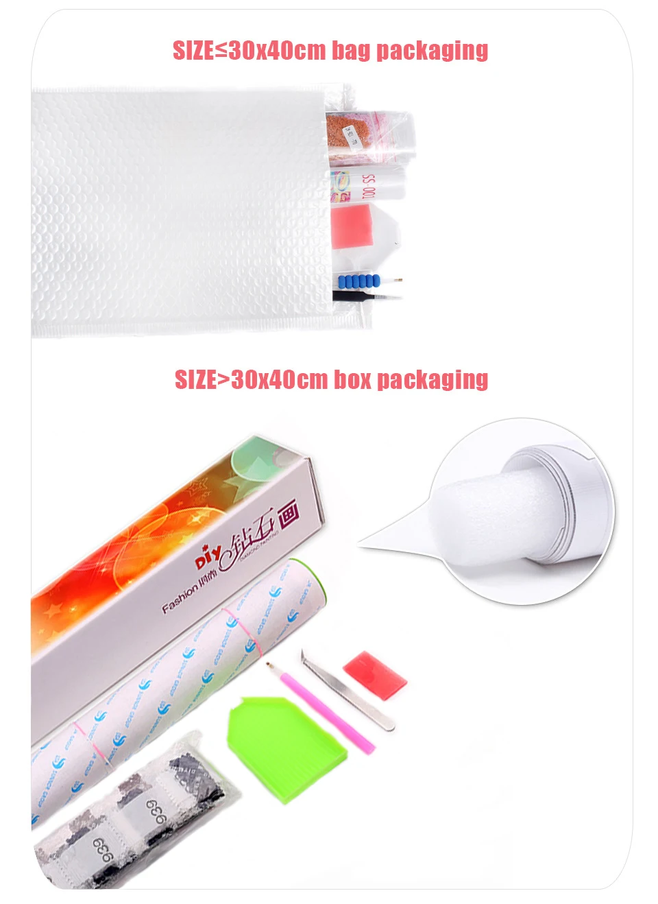 У нас есть 20-30% дополнительных алмазов в каждой упаковке, мы имеем хороший контроль качества, если вы обнаружили отсутствие алмазов, первая отправка на нас. Мы можем отправить вам бесплатно. После отправки вам придется оплатить доставку. Свяжитесь с нами через сообщение или через торгового менеджера.