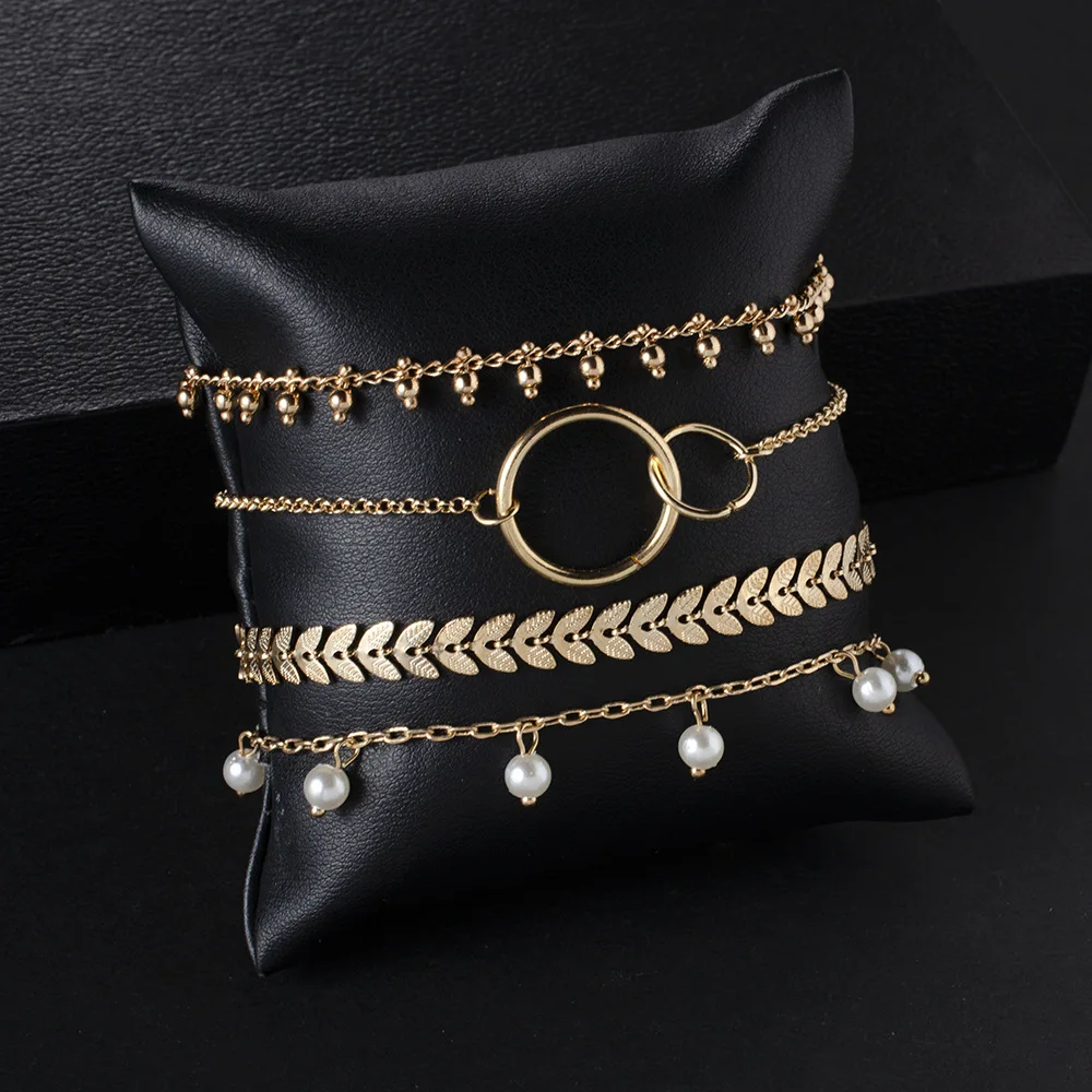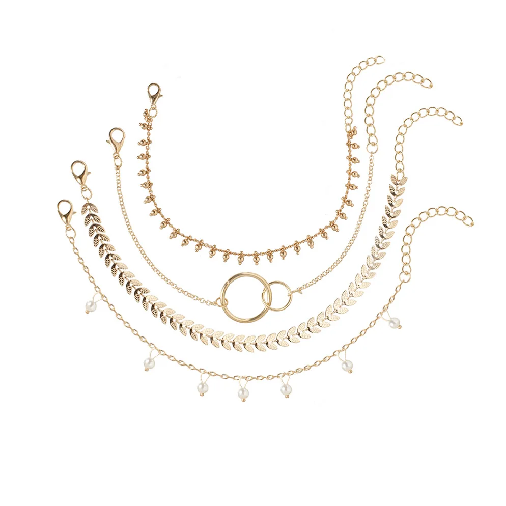 Набор из 4 браслетов и цепочек для женщин, простой геометрический круг, стрелка, кулон, цепочка на руку, 2021 сплав, жемчуг, модные ювелирные украшения