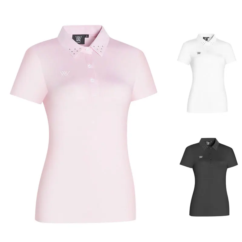 Футболка-поло женская быстросохнущая с коротким рукавом, розовая или черная