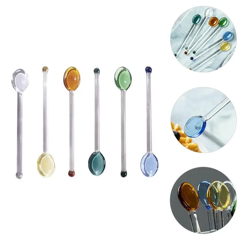 Стеклянные ложки, 6 шт., прозрачная кофейная ложка, десертная ложка...