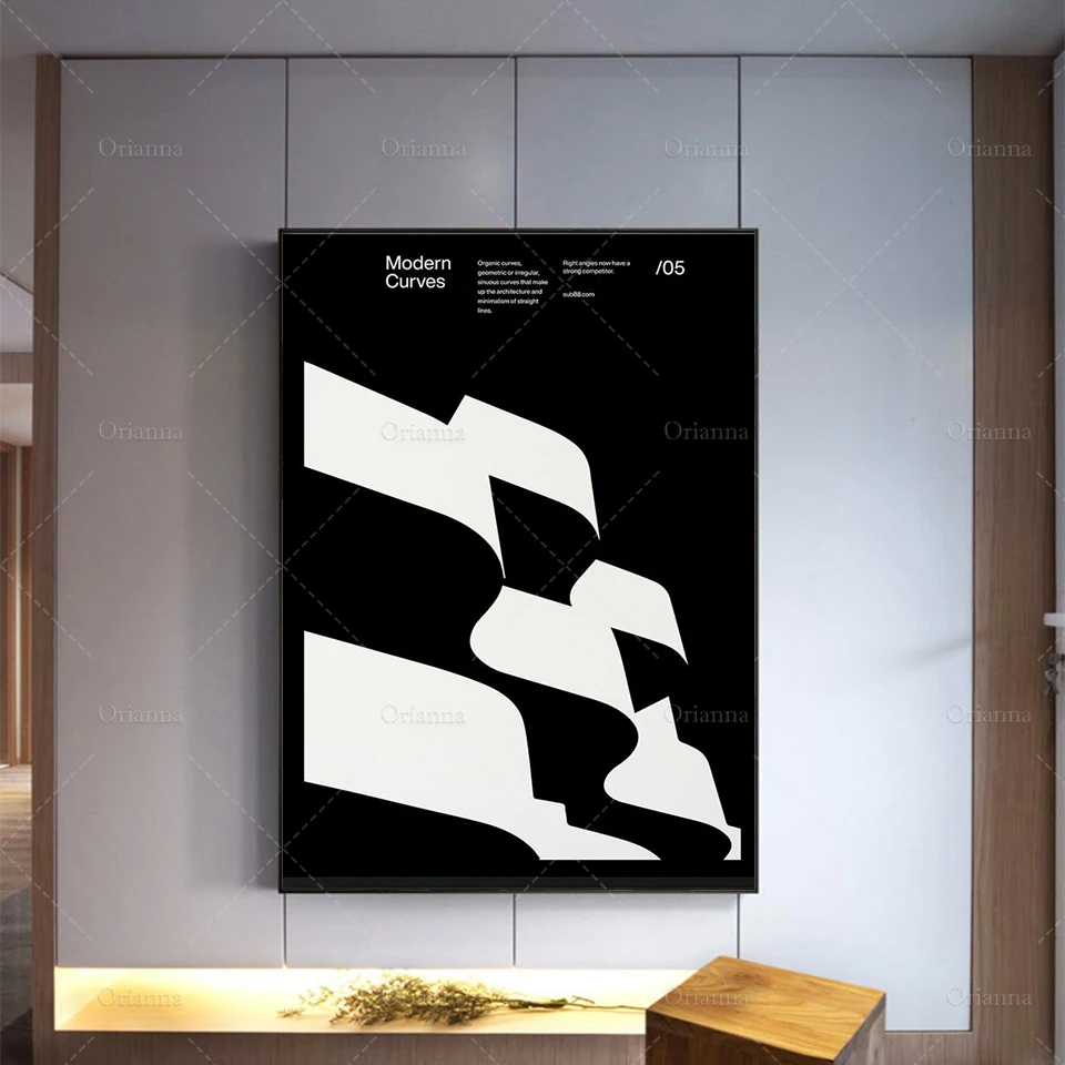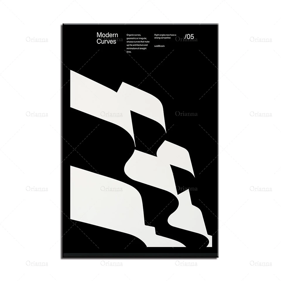 Плакат с изображением кривых 05, современный архитектурный дизайн, современный минималистичный внутренний Настенный декор, Bauhaus, печать, типографика, Helvetica