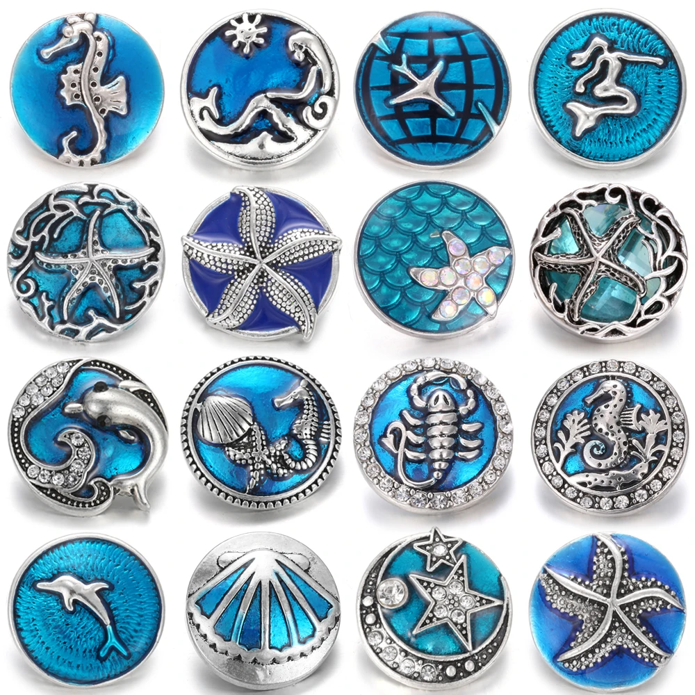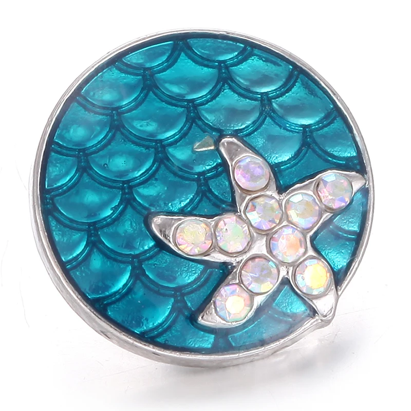 5 шт.лот новые ювелирные изделия 18 мм кнопки с синим горным хрусталем металлические Морская звезда Дельфин Русалка Имбирная пуговица подходят для браслета с защелкой