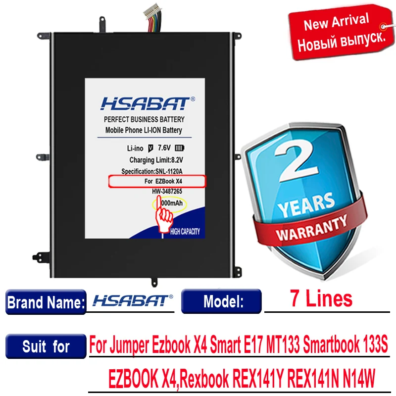 Аккумулятор HSABAT 0 цикл 6000 мАч 30154200P для Jumper EZBook X4 BBEN N14W TH140A AK14 EXO Smart E17 HW-3487265