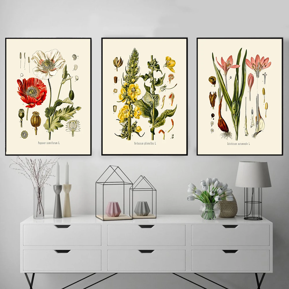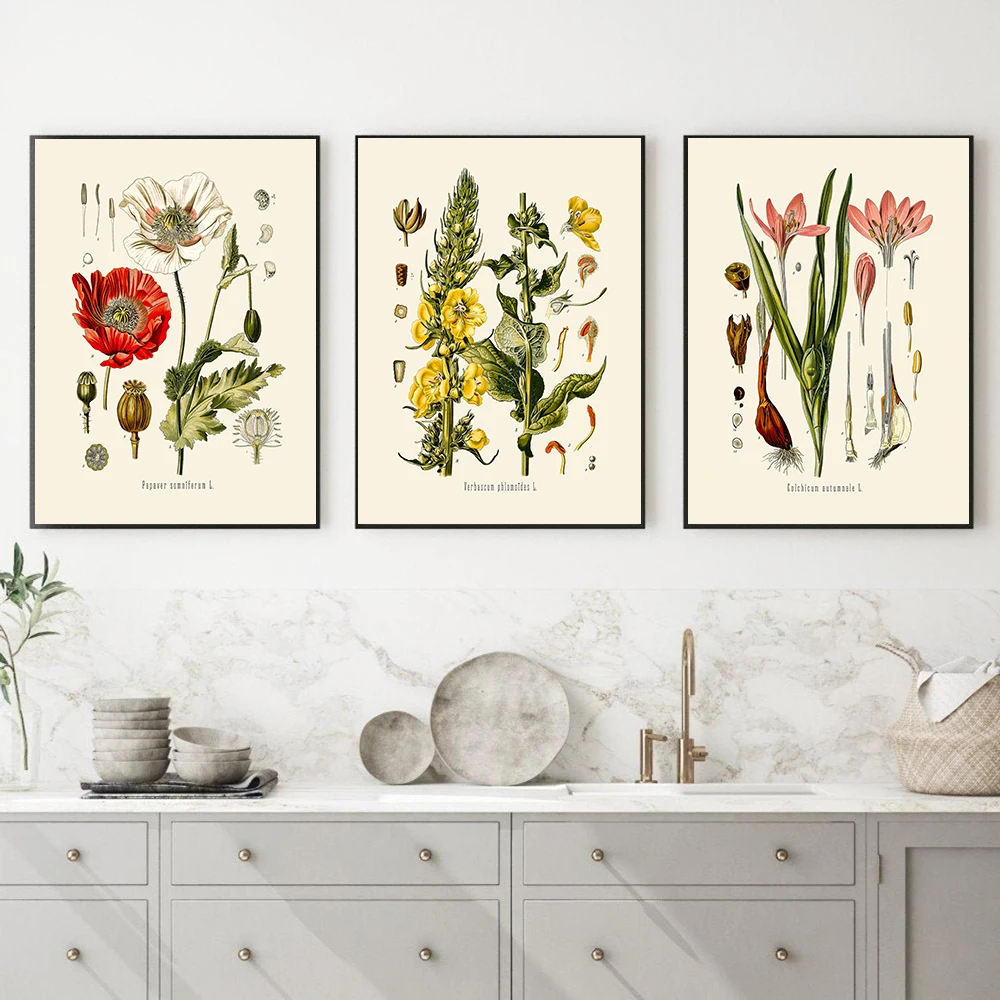 Винтажные французские иллюстрации, Постер диких растений, растительный цветок, печать на холсте, живопись, Настенная картина для кухни, домашний декор