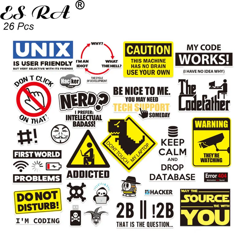 26 шт. наклейки программируемый код ноутбука Pegatinas для мальчиков ноутбук Водонепроницаемый ПВХ бутылка журнал Lugguage украшения DIY