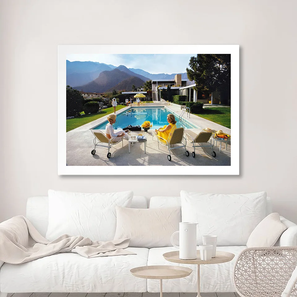 Винтаж пустыни дом вечерние бассейна гламура Арт холст с печатью постера настенная живопись искусство панно для Nordic Гостиная домашний декор