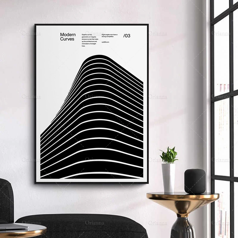 Плакат с изображением кривых 03, архитектурный дизайн, минималистичный внутренний Настенный декор, современное искусство, печать, типографика, Helvetica Neue, живопись