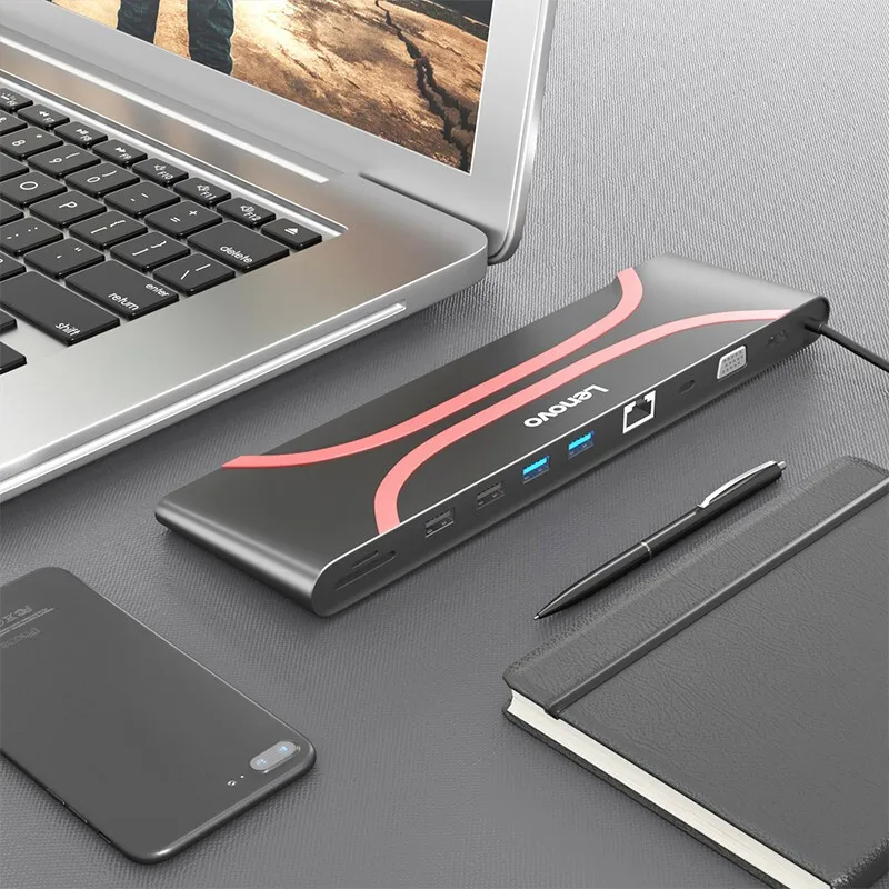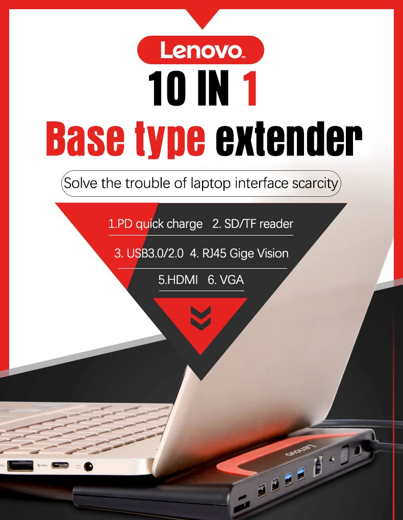 Lenovo USB Тип C HUB адаптер 10 порта USB разветвитель для ГМДИ VGA USB3.0 RJ45 TF Card Reader для ноутбука Macbook Аксессуары с ножными креплениями