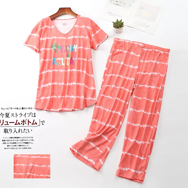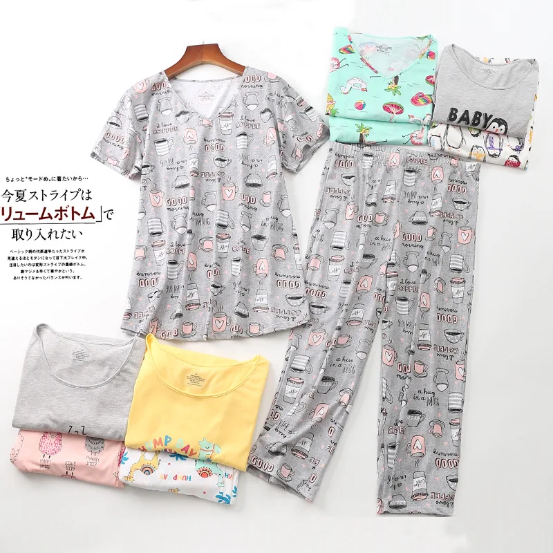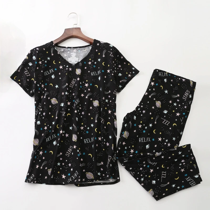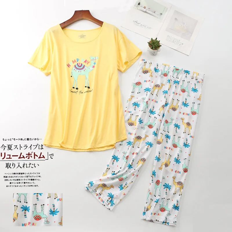 Милая и свежая Пижама, женская летняя Пижама с коротким рукавом, одежда для сна для полных женщин