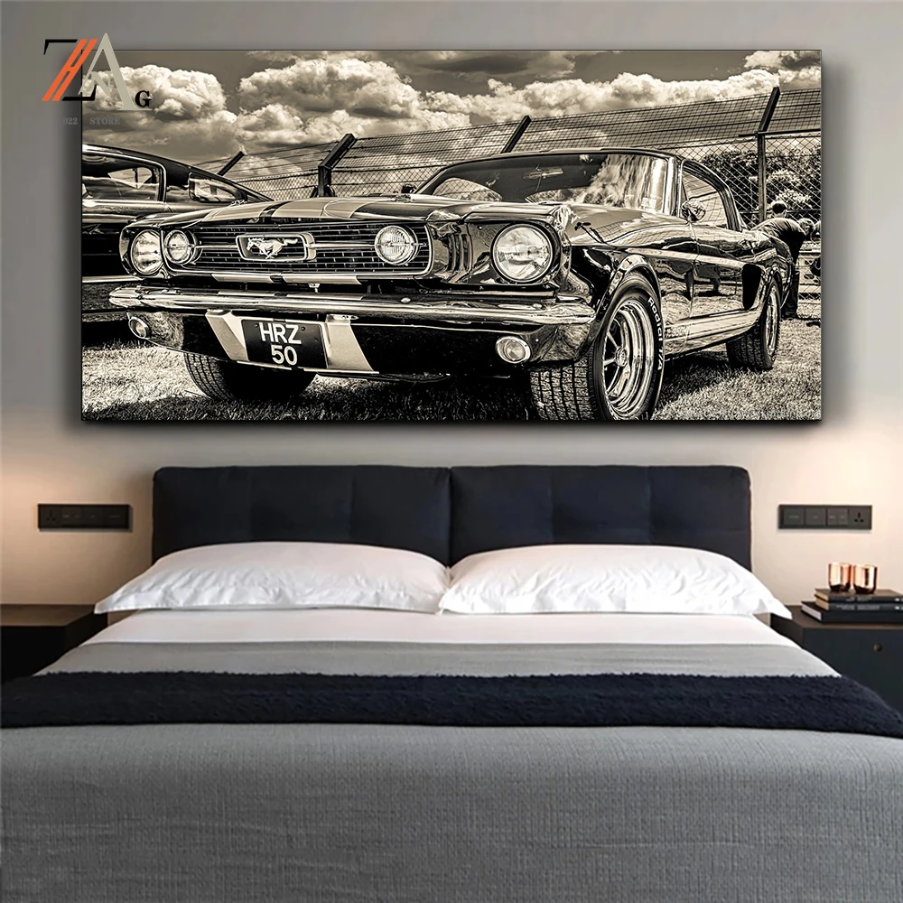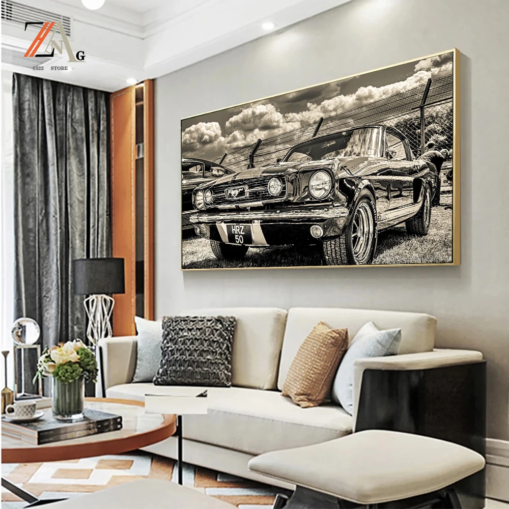 Ретро Форд Мустанг Классический автомобиль стена арт-деко картина плакаты и принты для гостиной винтажная Роскошная картина для автомобиля