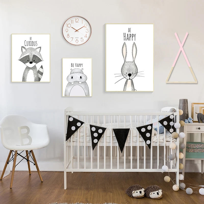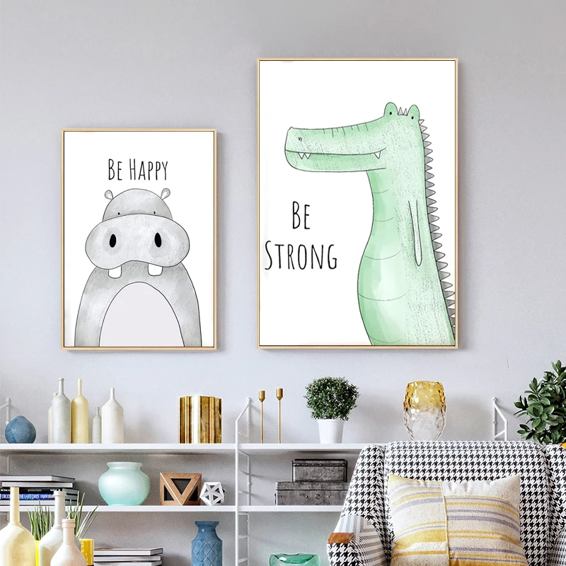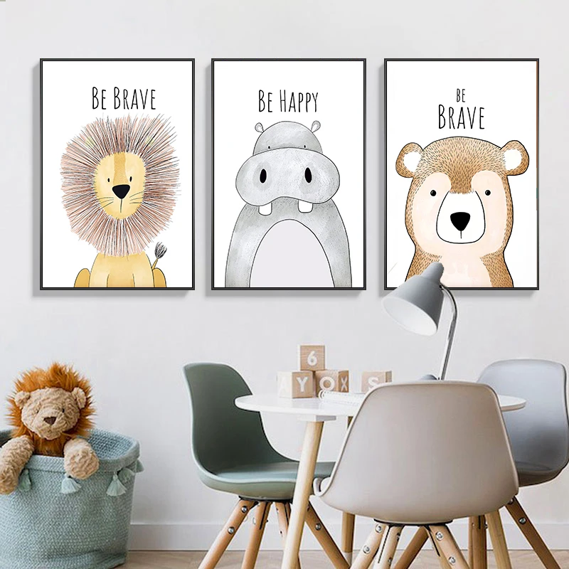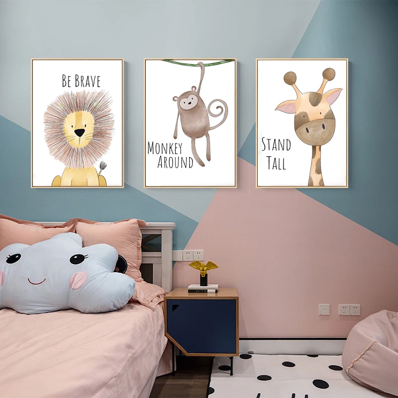 Постер для детской комнаты с изображением животных, Льва, медведя, жирафа