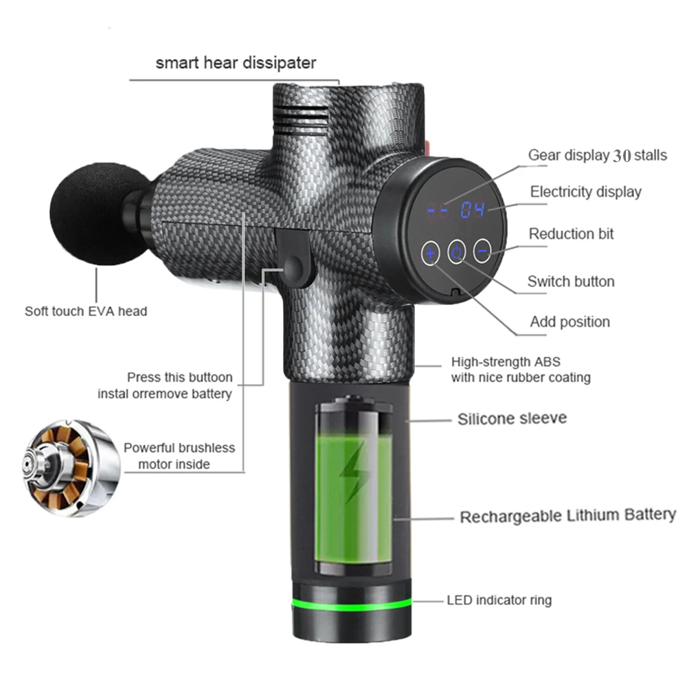 Массажный пистолет с ЖК-дисплеем, массажер для глубоких мышц, боль ...