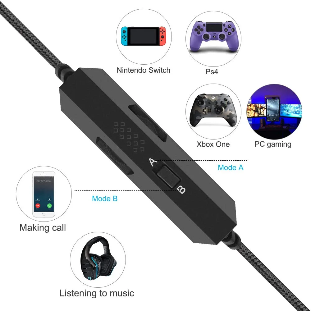 [Функция отключения звука и регулировки громкости] -- этот высококачественный сменный аудио-кабель для чата с функцией управления отключением звука и звуком позволит вам подключить Вашу игровую гарнитуру Logitech G433/G233/G Pro X к ваш контроллер Xbox One, игровые приставки 4 PS4 или ПК и Mac с комбинированным mic/наушники 3,5 мм Джек.