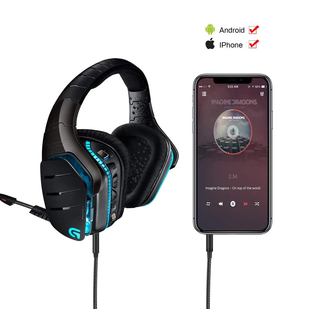 2,0 м Плетеный сменный кабель удлинитель музыкальный шнур провод для Logitech G433 G233 G Pro X игровая гарнитура с бесшумным регулятором громкости