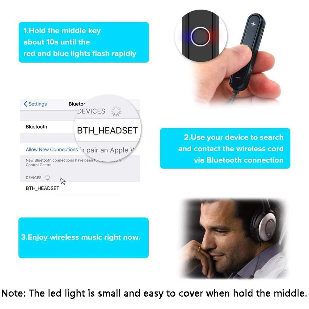 4) Длина: 10 дюймов (25 см), правая длина кабеля, чтобы избежать запутывания. Просто подключите к любому bluetooth-приемнику с помощью этого кабеля. Наслаждайтесь беспроводной Bluetooth потоковой музыкой.