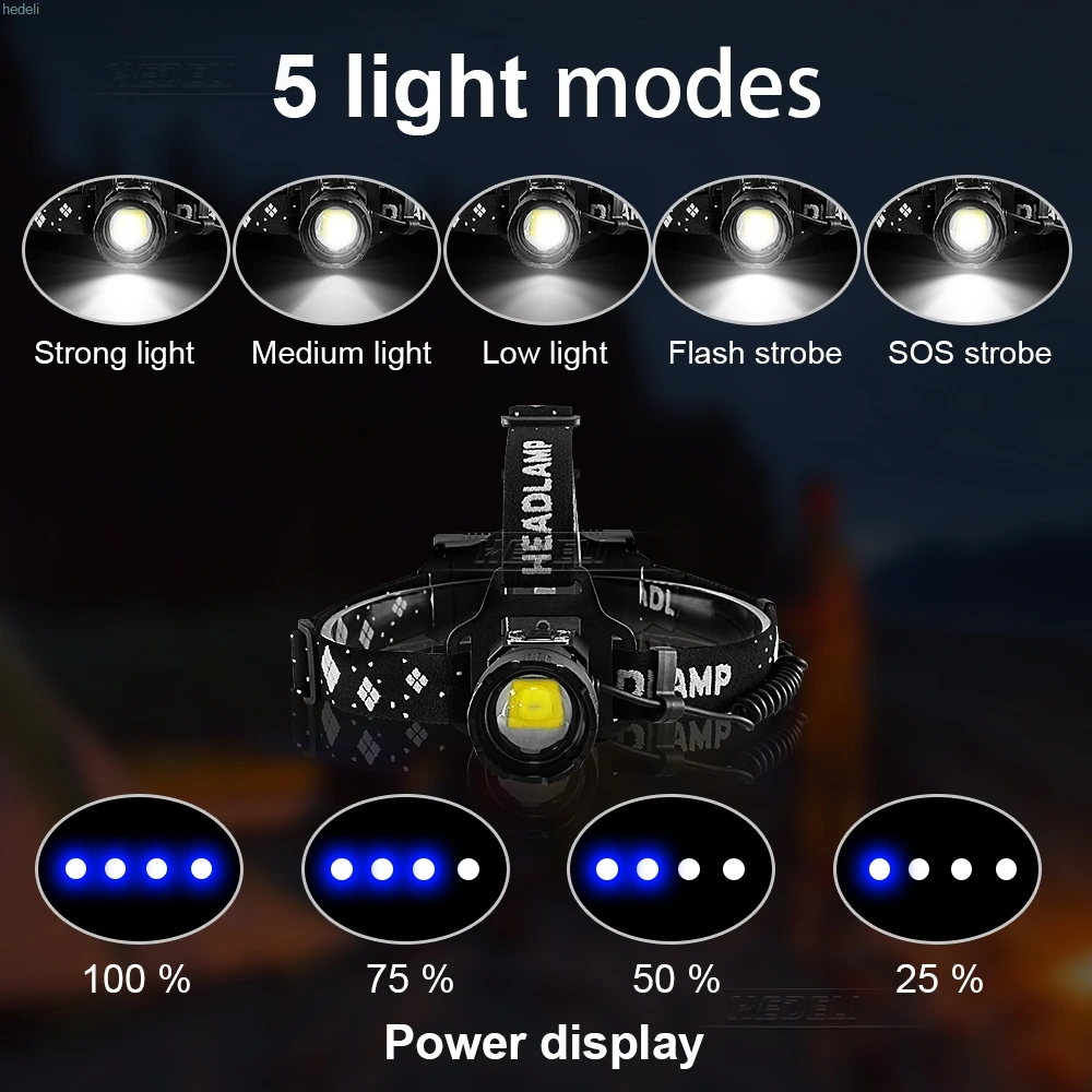 HEDELI XHP140 ИК Сенсор Мощный светодиодный налобный фонарь XM L2 вспышка светильник 18650 Перезаряжаемый usb головной светильник XHP90 лагерь Головной фонарь светодиодный налобный фонарь