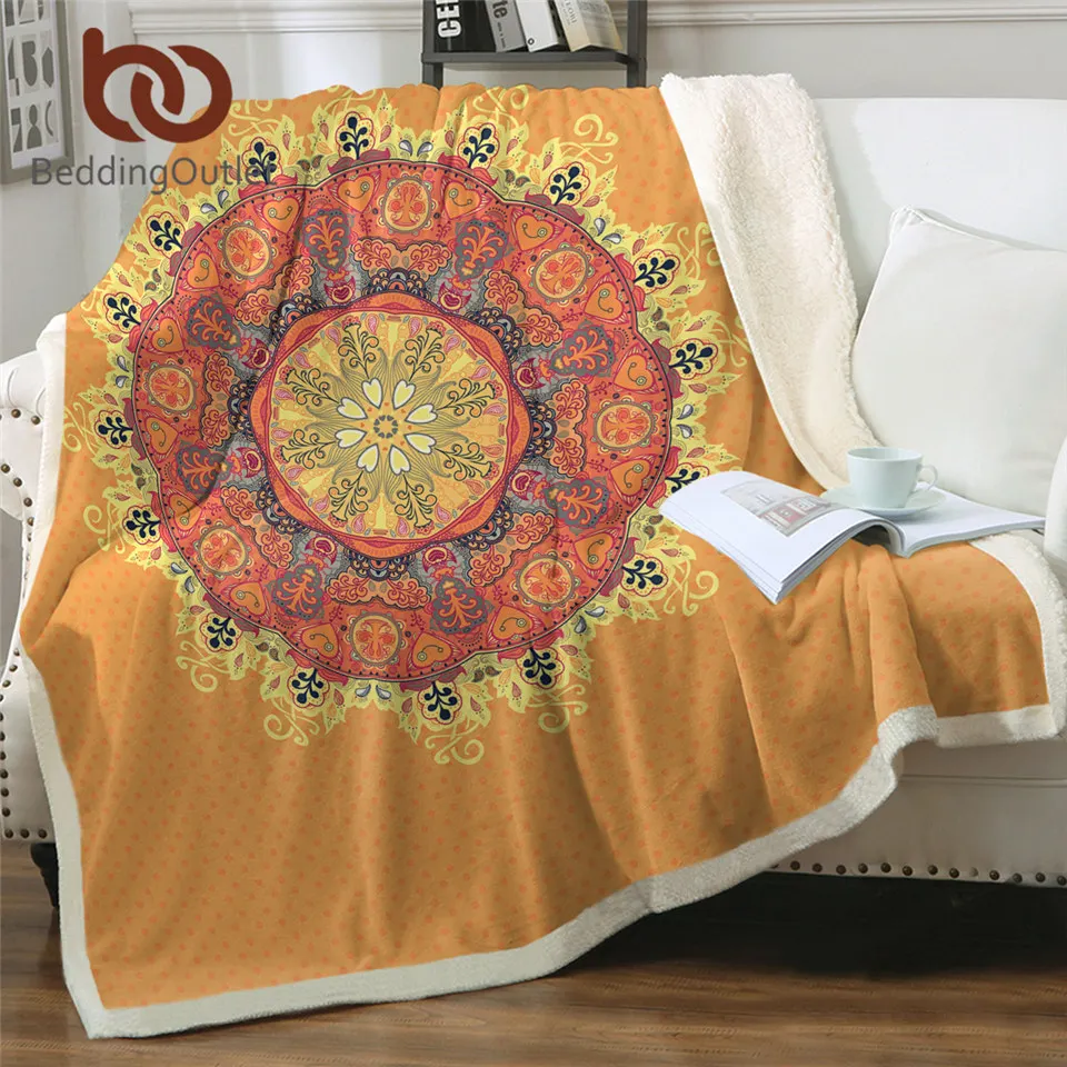 Плед BeddingOutlet с мандалой в стиле бохо, Флисовое одеяло в богем...