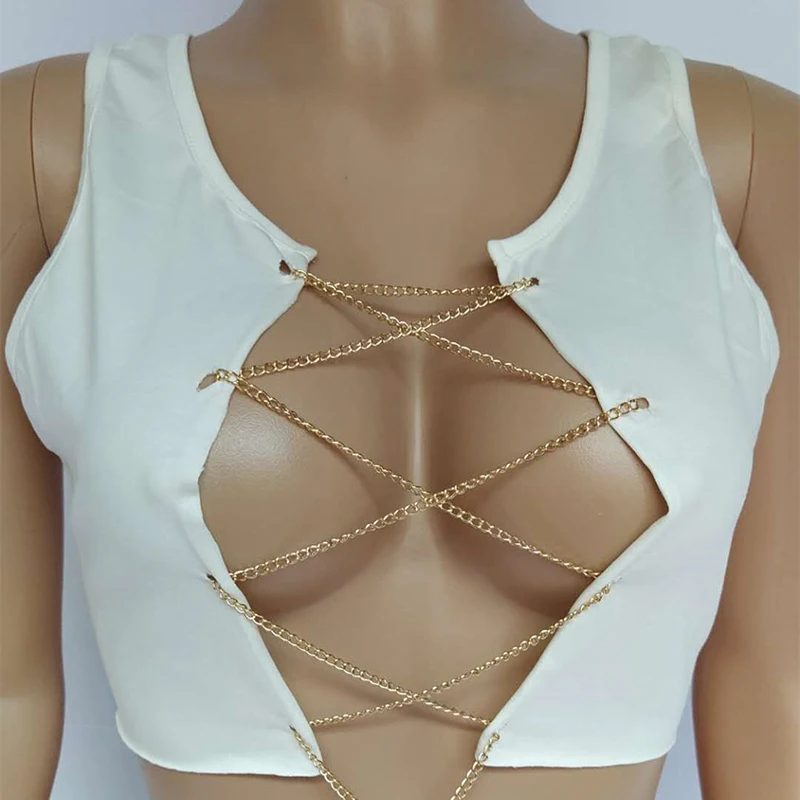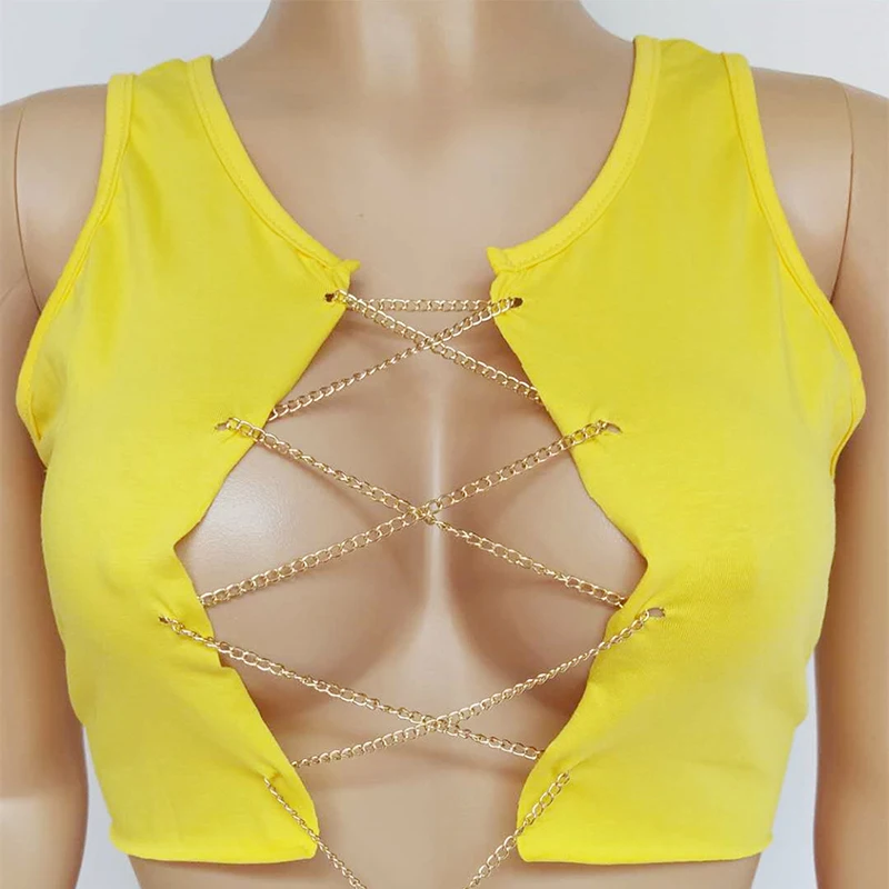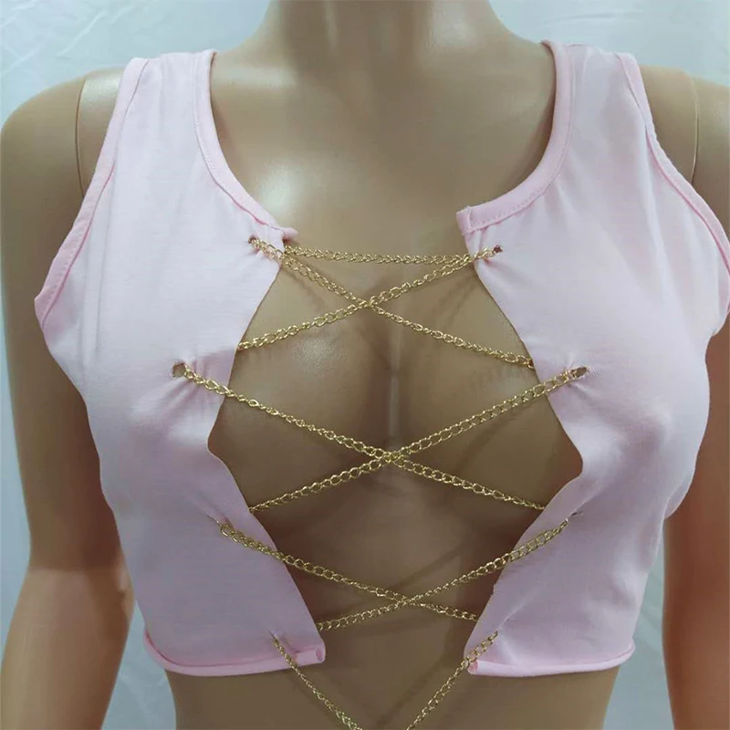 Сексуальный бандажный топ с металлической цепочкой, открытые топы д...