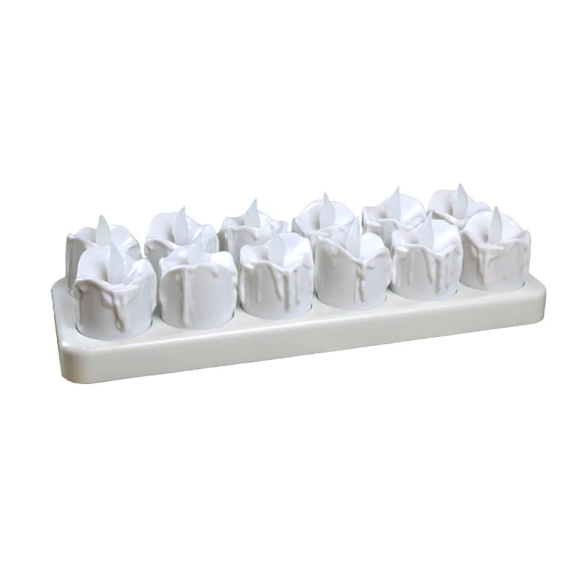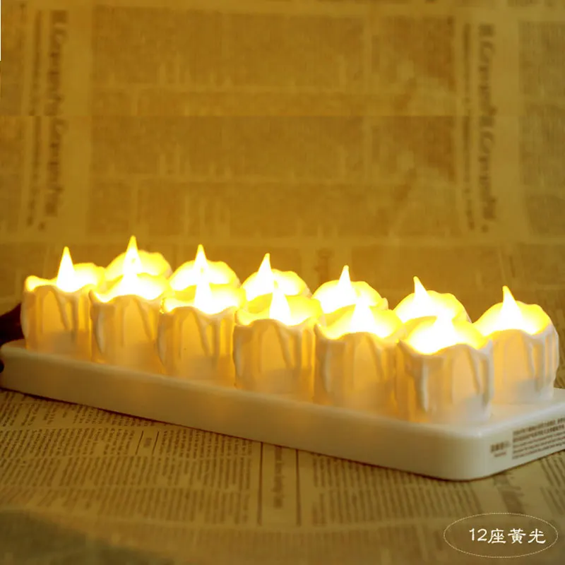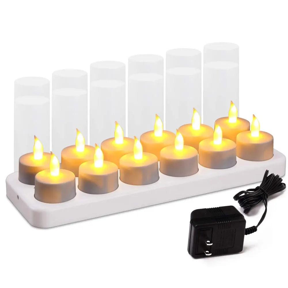 Упаковка из 12 мерцающих белсветильник перезаряжаемых свечей с аккумулятором, беспламенные декоративные светодиодные рождественские свечи для свадебного украшения