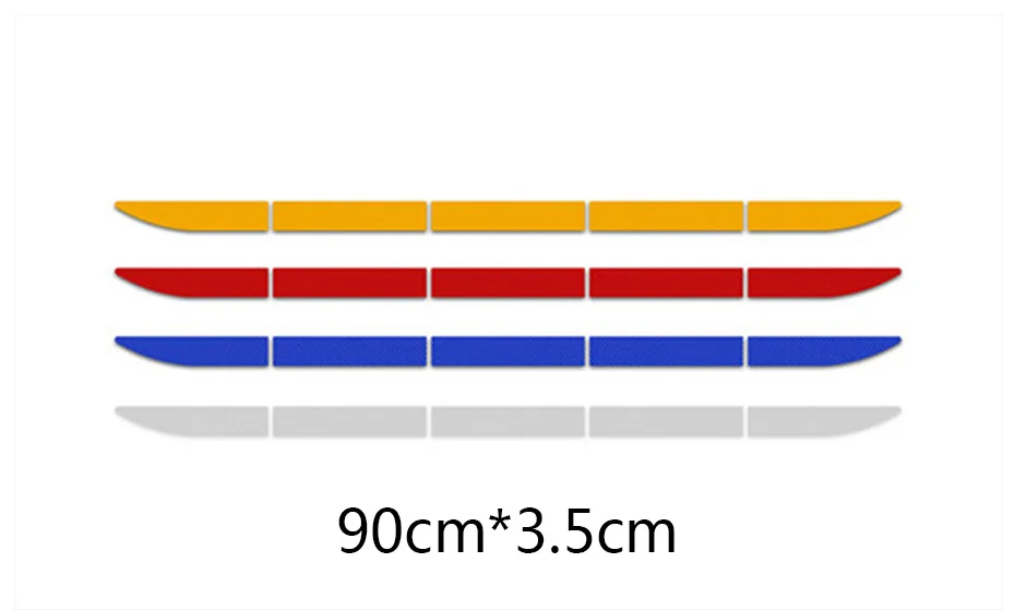 Сильное отражение, дальнее расстояние отражения, почти 300 м водонепроницаемость, защита от солнца и дождя, прочный, длительный срок службы уменьшает возможность случайных столкновений в ночное время улучшает видимость транспортного средства и делает вас более безопасными для вождения Спецификация: Название: автомобильная Светоотражающая наклейка Дополнительный цвет: белый/красный/желтый/синий Размер: 90x3,5 см Материал: клейкая наклейка Количество: 1 шт. посылка Содержание: 1 * Светоотражающая полоса для автомобиля