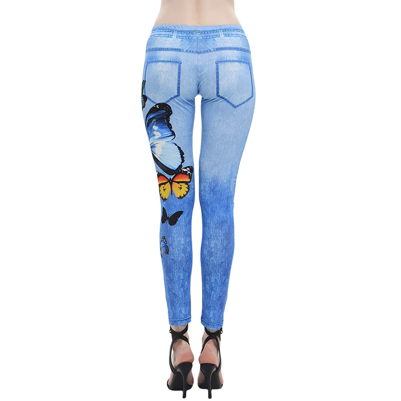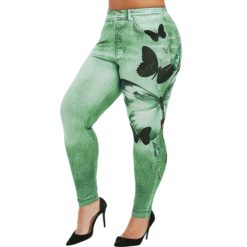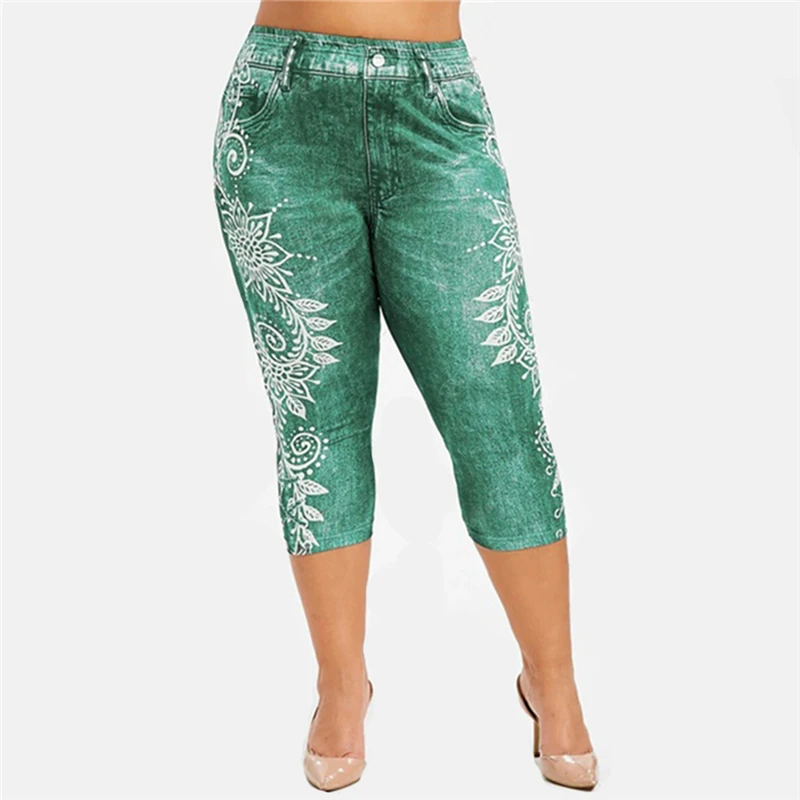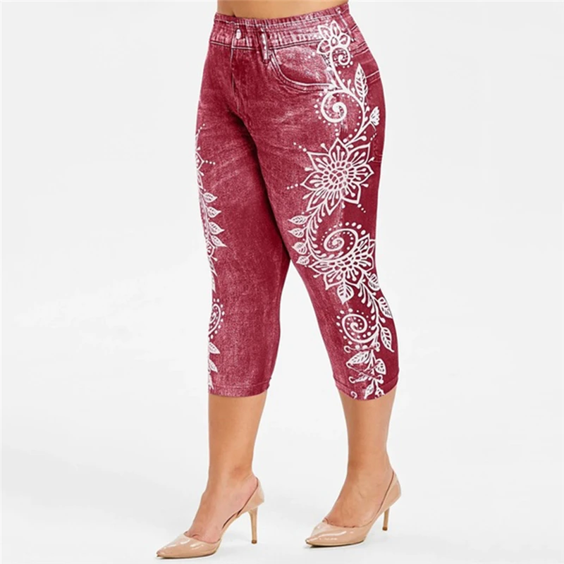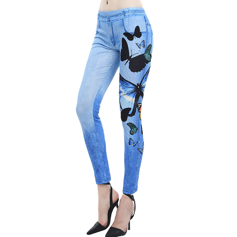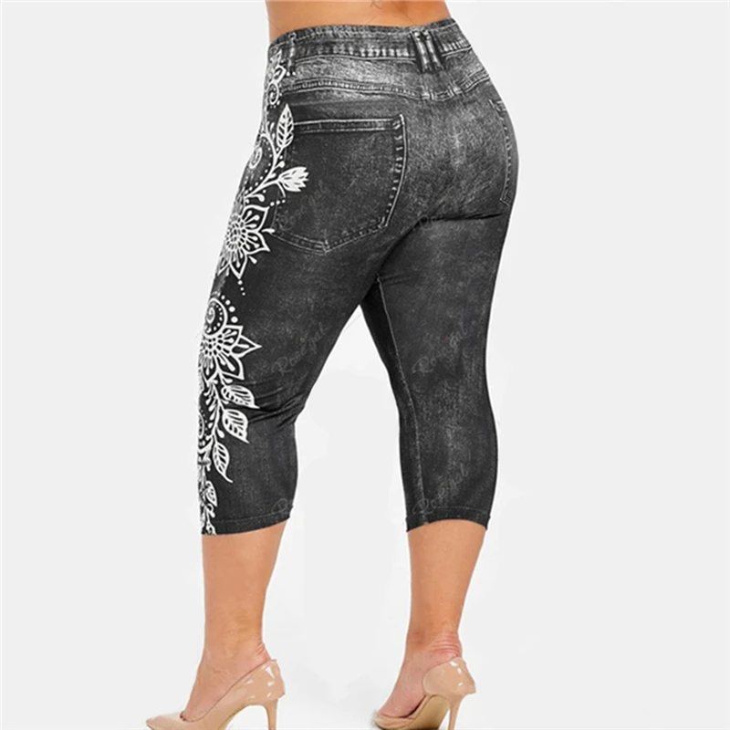 Женские Стрейчевые джинсы, эластичные джинсы с цветочным принтом, ж...