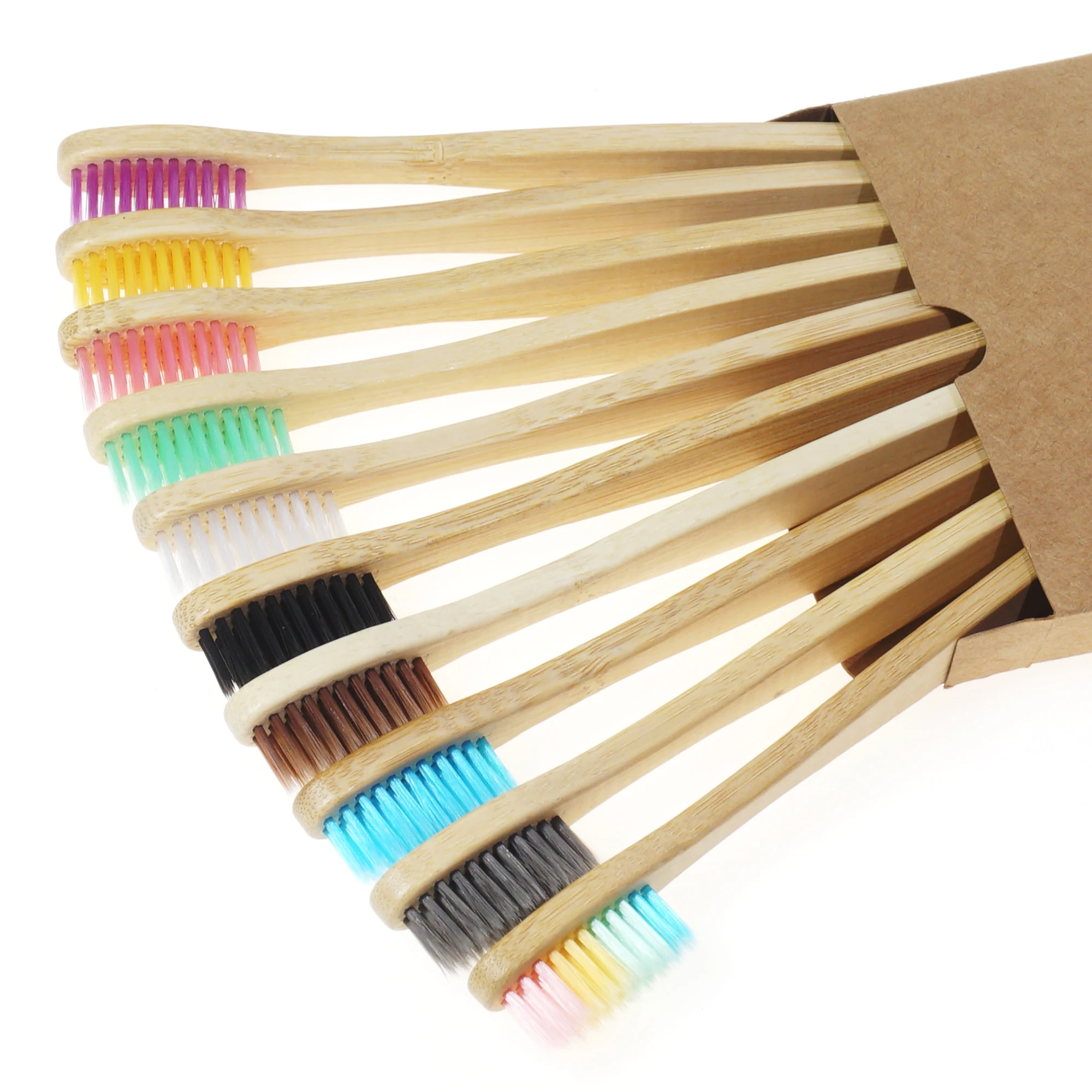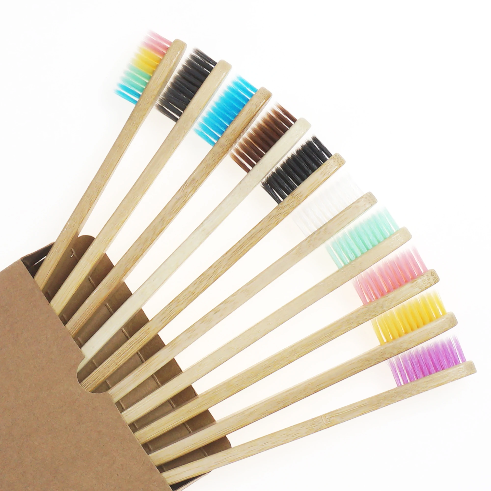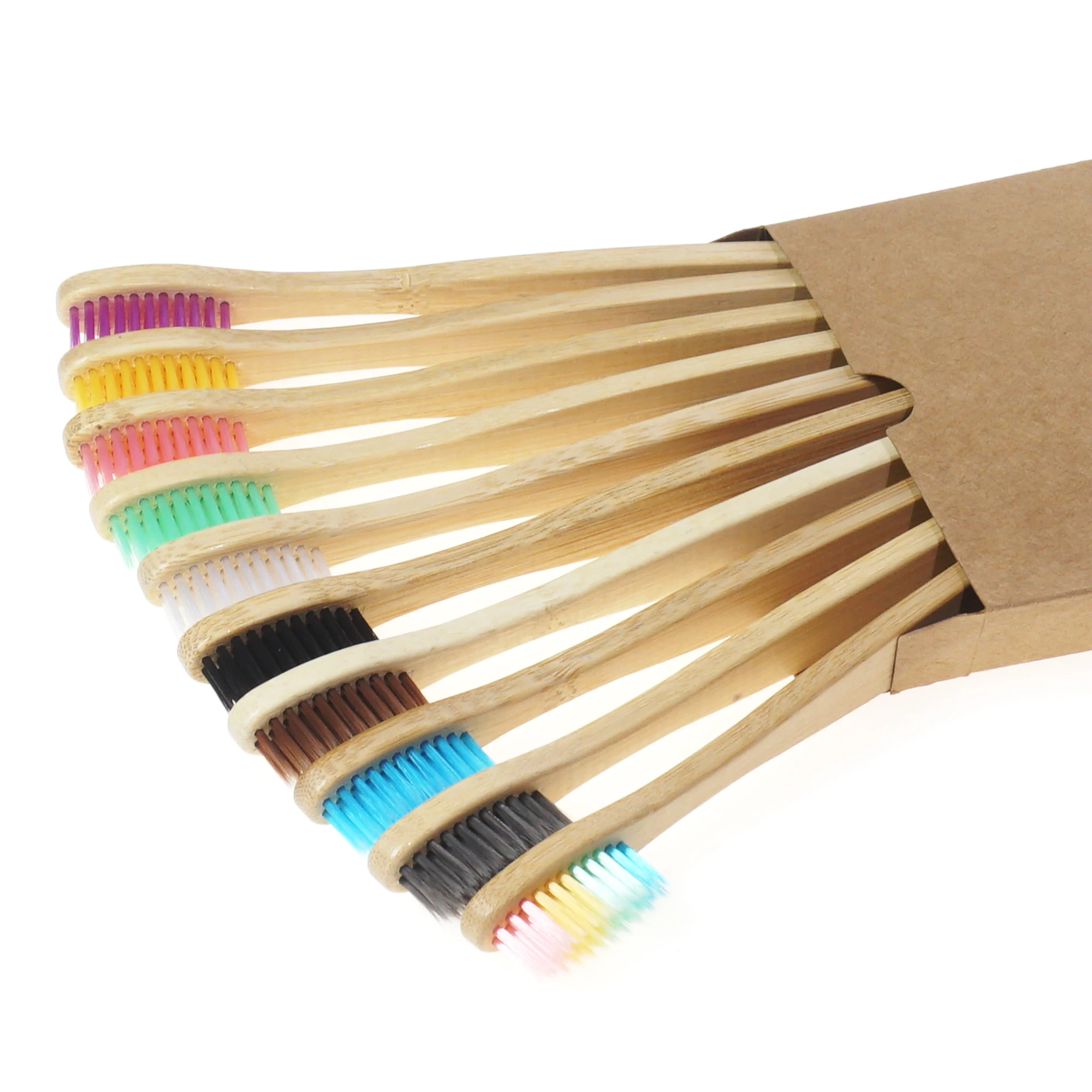 100 шт красочные зубная щетка из натурального бамбука набор для отбеливания зубов бамбуковые зубные Уход за полостью рта по индивидуальному заказу лазерная гравировка логотипа