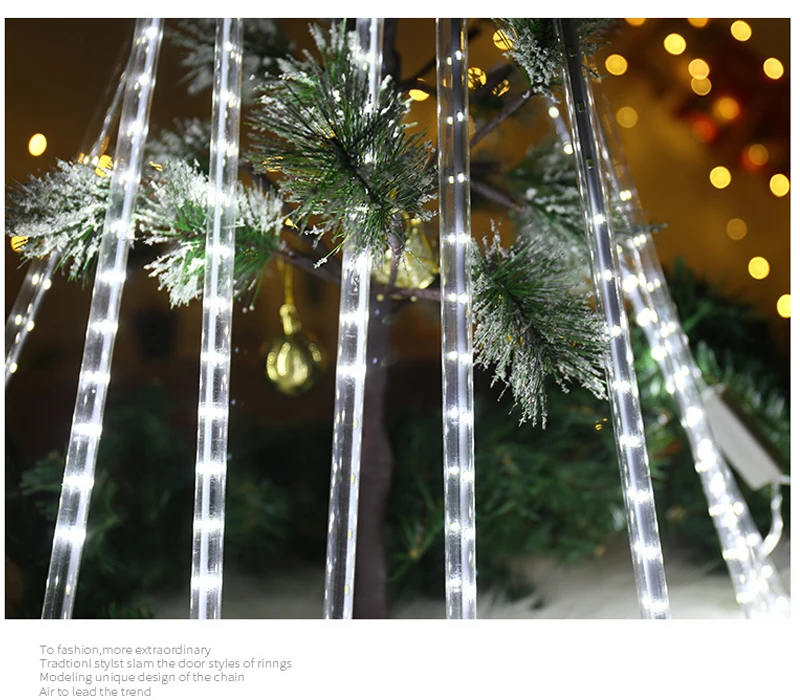 Водонепроницаемая светодиодная гирлянда метеоритный дождь с 8 трубками, рождественские украшения для дома, Сказочная гирлянда на дерево, 30 см, 50 см