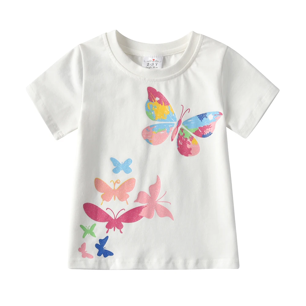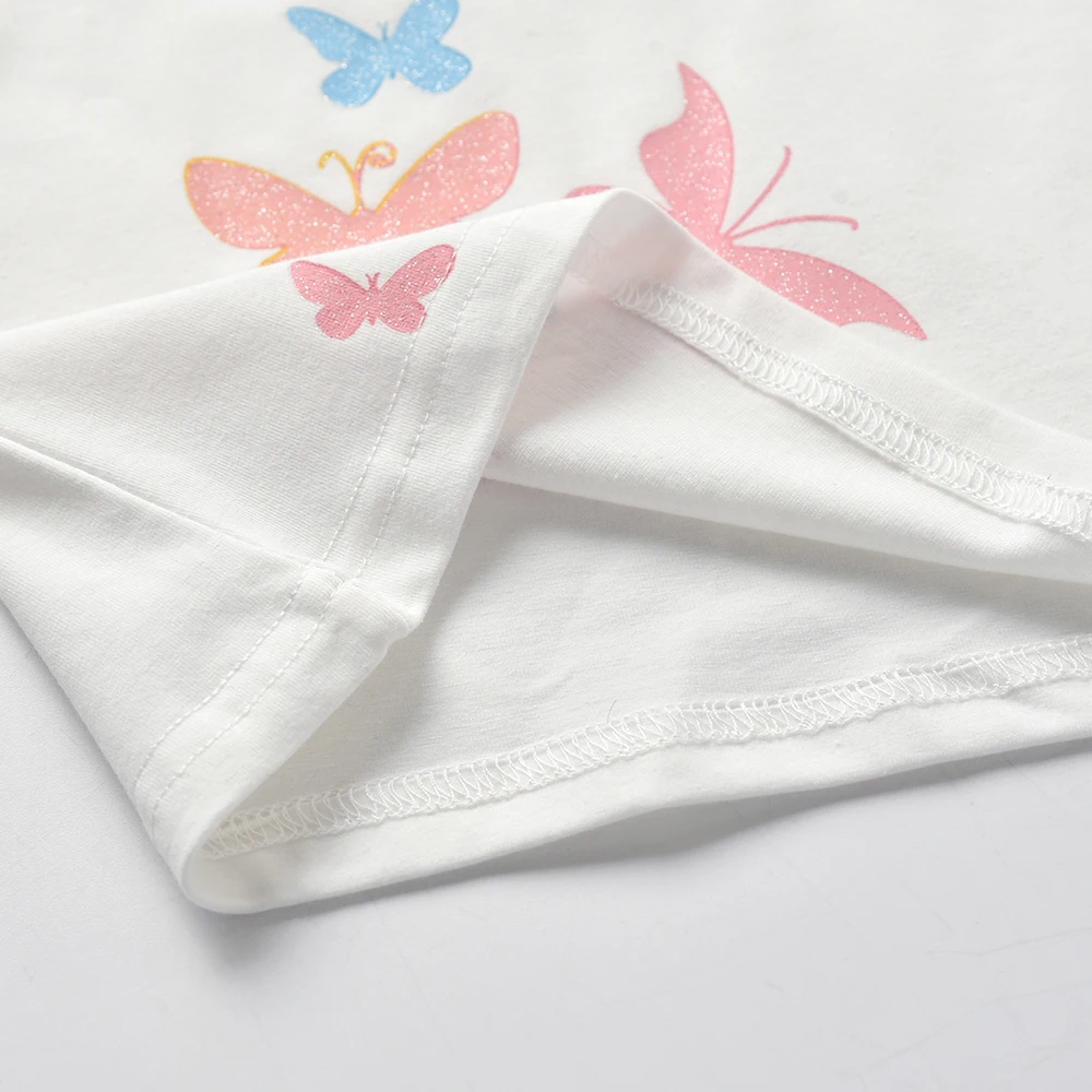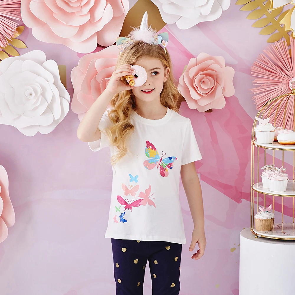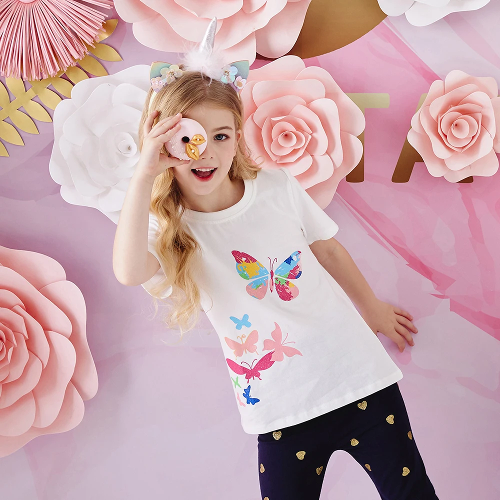 Футболка для девочек из хлопка с коротким рукавом и принтом в виде бабочек