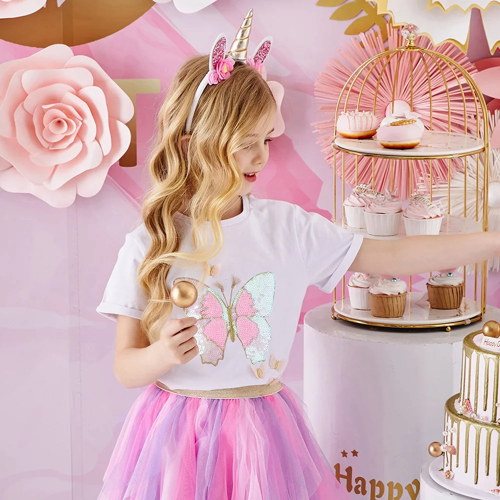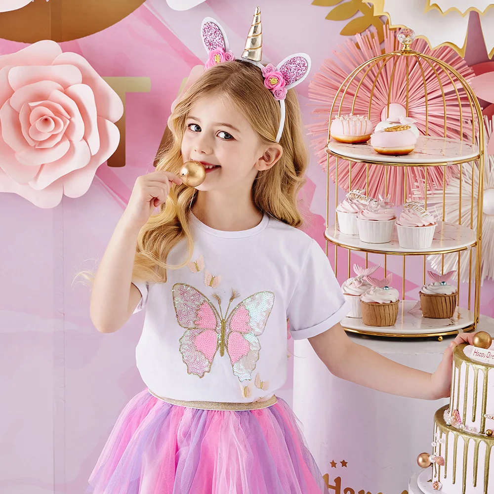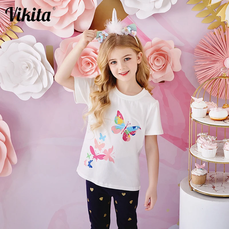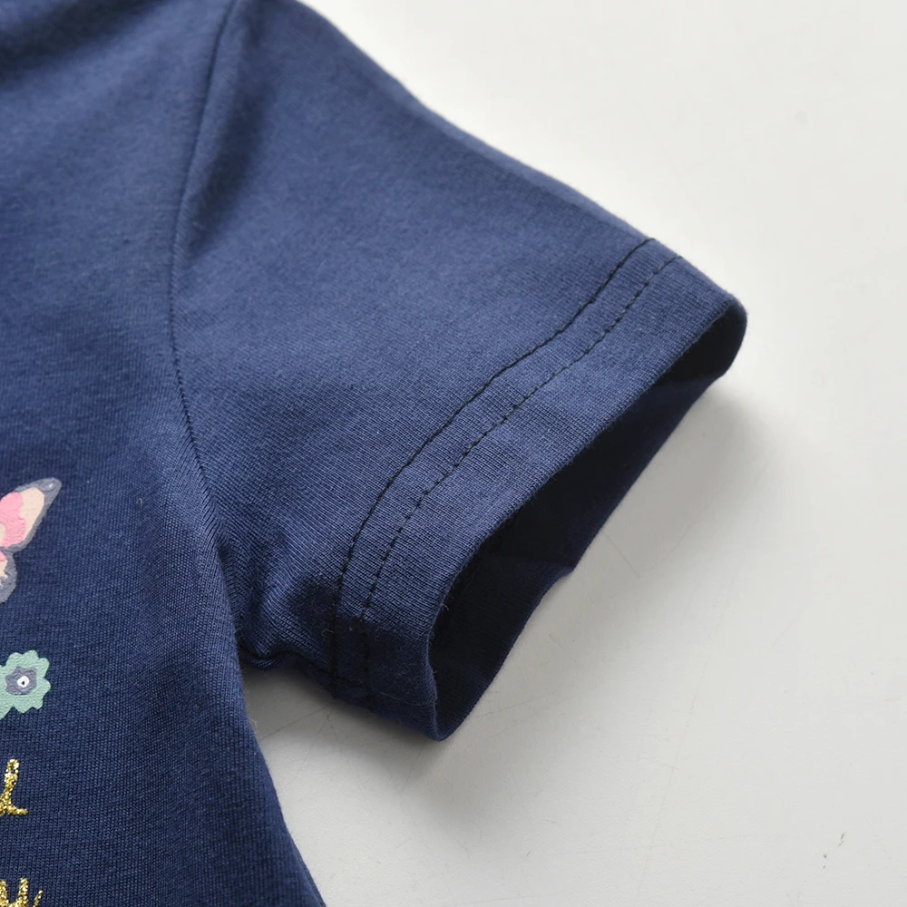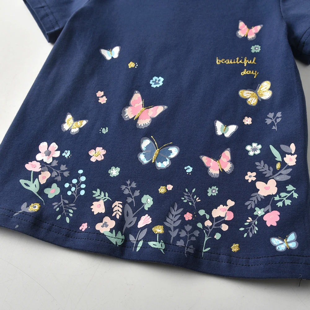 Футболка для девочек из хлопка с коротким рукавом и принтом в виде бабочек